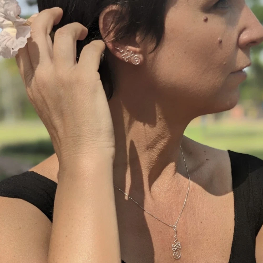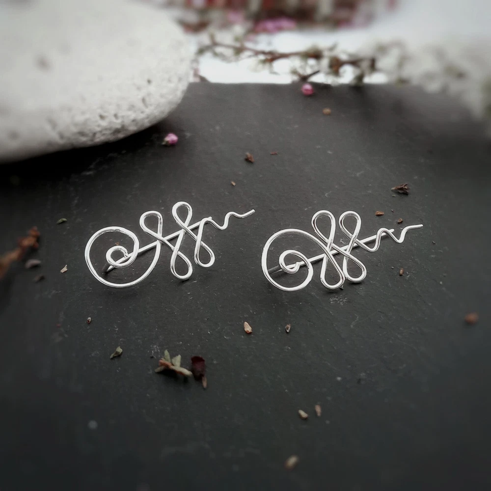 Lotus flower unalome climber earrings in sterling silver. Nickel Free. Gorgeous spirallled unalome symbol ear climbers. They follow the side cartilage of the ear and sweep upwards giving an effective high polished silver spiral twirl which really stands out! The Unalome is both a Buddhist and a Hindu symbol. It represents the path to freedom. Or slightly more down-to-earth, your life's path. Easy to fit and wear, these lightweight Yoga over ear crawlers are a must for any Boho Minimal jewellery collection. Buy Now! Dimensions Height: 2.4 cm Width: 1.2 cm Weight per pair: 1.03 grams SOLD ONLY IN PAIRS! Delivery Information All items dispatched from the UK. Item will be carefully packaged in eco-packaging to safeguard it during delivery. Standard Track48 Shipping with Royal Mail or Yodel included FREE . Tracking number details will be sent after dispatch (which is usually within 1 working day of purchase. Weekends/festivities excluded). Faster shipping options also available for the UK. Worldwide shipping available with Royal Mail Tracked & Signed. Returns accepted within 14 days of receipt. At customers’ expense.