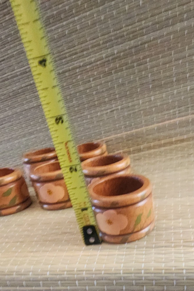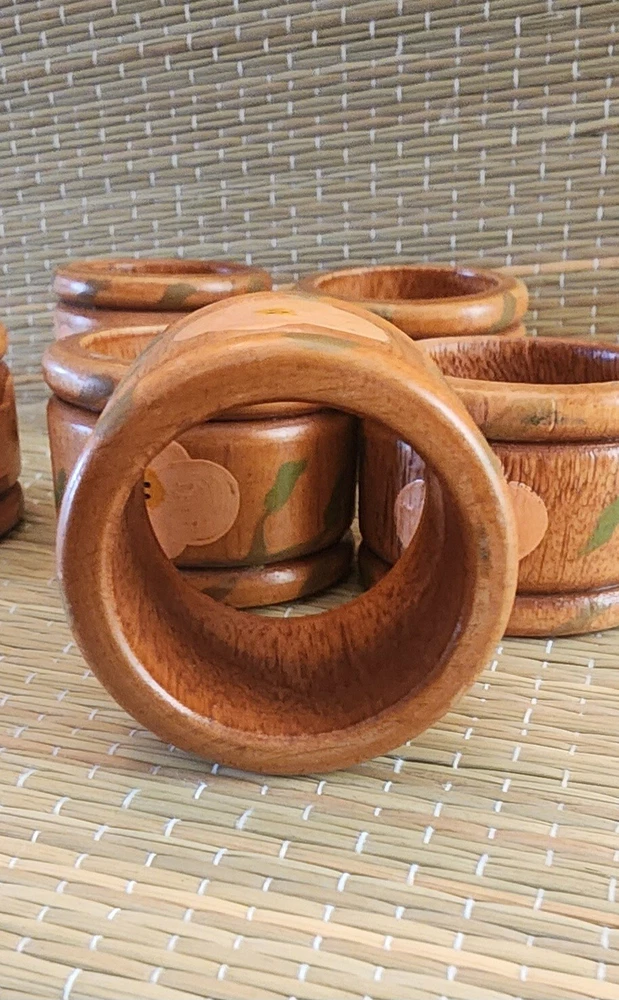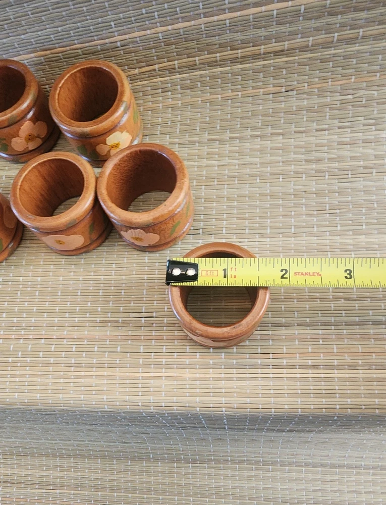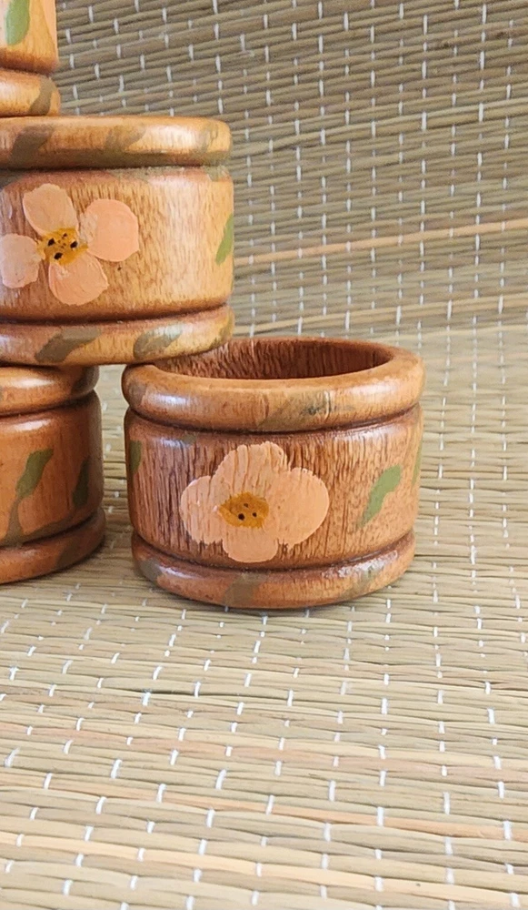 Set Of Six Unbranded Wooden Napkin Rings With Yellow Flowers and Green Leaves With Cottagecore Vibes See photos for measurements Excellent Pre-owned Condition