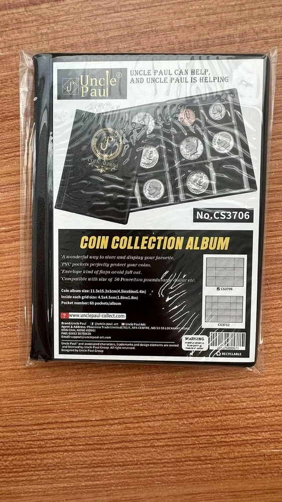 Store New Arrivals Add to Favorite View Feedback Contact Uncle Paul Coin Album Coin Holder Coin Collection Book for Half Dollar/Small Dollar/50 Pence/Two Pounds 60 Pockets CS3706 Description Item model number CS3706 Item Package Quantity 1 Style Classic Max Input Sheet Capacity 10 Part Number CS3706 Color 6 Pockets/Page(4.5x4.5cm Per Grid) Brand Uncle Paul Product Dimensions 4.5"L x 0.4"W x 6"H Material artificial leather & PVC Batteries Required? No Pages 10 Item Weight 2 pounds Manufacturer Uncle Paul Theme Outer Space Batteries Included? No Occasion Christmas, Birthday Size Coin Album Size(11.5x15.2cm) Is Discontinued By Manufacturer Yes Specific Uses For Product Coin Collection Shape Rectangular Number of Pieces 1 Album Cover: Artificial Leather / Inner Pages: PVC HIGH QUALITY MATERIAL - Cover is made of great artificial leather, inside page is made of PVC, durable and portable PRODUCT DIMENSION - Coin album size: 11.5x15.2x1cm(4.5”x6”x0.4”). Inside each grid size:4.5x4.5cm(1.8”x1.8”). 60 pockets: 10 page in total, 6 pockets per page WIDE APPLICATIONS - Enough space for you to stock your coins, caps, tokens, medallions, badges etc, such as half dollar, small dollar, 50 pence, two pounds etc EFFECTIVE PROTECTION - Envelope kind of flaps to keep coins not easy to fall out. Clear pockets easy to view and exchange UNIQUE GIFT - Exquisite gift for friends, families, kids or loving coins collection people etc, they will very satisfy this coin album Product Description ABOUT US We offer the best prices around on high quality products. Our E-store includes media such as books, movies, music and games while offering electronics, toys, sporting apparel, clothing, tools, general home, garden items and more. SHIPPING We are always working hard to ensure your package arrives as soon as possible. Please understand that some factors like weather, high postal traffic, and the performance of shipping companies are outside of our control. We offer free shipping to the lower 48 states and ship within 2 business days of payment, usually sooner. We do not accept P.O. Boxes. Please provide a physical address. RETURNS We offer a 30-Day Return Policy on items which you are not completely satisfied with. You have the option for a full-refund or an exchange of the item. No returns are available on items shipped outside of the USA. PAYMENT We accept PayPal. CONTACT US This page content is yet to come Please ad us to your favorite seller and visit again later Thank You CUSTOMER SATISFACTION We try our very best to make sure every customer is completely satisfied. If there's a problem, message us! We're happy to help.