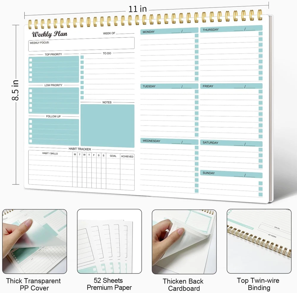 Fast Shipping Great Customer Support Satisfaction Guaranteed DESCRIPTION Shipping Shipping Shipping All domestic packages are shipped for Free (Unless other shipping method was selected during the checkout) Most items ship and arrive much sooner than the estimate delivery date. Usually within 2-3 days from payment. However, we have longer estimates to compensate for the occasional delay or supply chain breakdown. We do not accept P.O. BOXES - PLEASE PROVIDE A PHYSICAL ADDRESS Return Return Return In the event that you would like to return your purchase, we allow returns that are processed within the defined return date (the return date is to be found in the return policy/shipping and handling section) Please contact us for a return authorization and the return shipping address. Payment Payment Payment PayPal is our preferred method of payments it's the quickest, easiest and most secure way to pay for your goods or services online. PayPal offers buyer and seller protection should there be a problem. If you do not have a PayPal account, to get started and buy your first item with us is very easy. Simply click on the 'Buy It Now' button and follow the eBay checkout steps. Select PayPal as the payment method you then will be given the chance to enter your card details in to PayPal's secure checkout in order to pay for your order. Once the payment has been made, you will then be given the opportunity to make your own PayPal account to make paying for your items in the future very easy. Should there be a problem with payment please do let us know. Feedback Feedback Feedback Customer satisfaction is very important to us. If you have any problem with your order,please contact us and we will do our best to make you satisfied, please do not leave a negative feedback before we resolve your problem. We guarantee that your issue will be solved quickly. As long as you are happy with your purchase of , please leave us a positive feedback. Your feedback is very important to us it affects our search placement on eBay. We will leave a positive feedback for you in return automatically once we receive your feedback. Contact Us Contact Us Contact Us If you have any queries, please contact us via ebay. We usually respond within 24 hours on weekdays. Thank you for visiting our ebay store! ✍MAKES YOUR LIFE PRODUCTIVE - This weekly planner notepad focus on meeting any of your needs. A weekly planner notepad includes space to write your to-do list, appointments, and meeting and keep track of all days clearly with the weekly view. Blocks in the weekly page for priority and notes columns for your spontaneous and important events. Manage your time effectively. ✍FUNCTIONAL DESIGN-Premium quality covers and twin-wire binding, a sturdy cardboard backing. classic and stylish combinations of appearance. Premium thick paper, reduces ink bleeding, erasing fraying and shading issues. Provide you with a better writing experience. ✍UNDATED WEEKLY PLANNER- 52 Weeks, undated weekly planning pages, let you pick up exactly right where you left off. There're no unnecessary sections to fill in and no skipping dates or pages. The weekly planner is conveniently undated so you can plan in 2024, 2025, or even 2050! ✍POPULAR PERFECT SIZE The size of this weekly planner is 8.5x11 inches for 52 weeks which is large enough for your scheduling and appointments. A perfectly portable weekly planner journal for work, home, school, and travel is a perfect gift. Undated Weekly Planner Notepad 52-Week To Do List Organizer 8.5x11" Click here to see description Fast Shipping Great Customer Support Satisfaction Guaranteed DESCRIPTION Shipping All domestic packages are shipped for Free (Unless other shipping method was selected during the checkout) We ship within two business days of payment, usually sooner Standard FREE shipping takes between 3-5 business days Expedited shipping takes between 2-3 business days Overnight shipping takes between 1-2 business days We do not accept P.O. BOXES - PLEASE PROVIDE A PHYSICAL ADDRESS We Ship Globally using ebay's GSP, the item is sent to a logistic center in KY and shipped from there to the rest of the world. International customers are responsible for all duties and taxes Contact your local authority for questions related to the amount of duties or taxes you will be responsible for Return In the event that you would like to return your purchase, we allow returns that are processed within the defined return date (the return date is to be found in the return policy/shipping and handling section) Please contact us for a return authorization and the return shipping address. Please contact us for a Return Merchandise Authorization (RMA) number. We advise you to use a reputable carrier service when returning your goods. Please pack all returns appropriately. We ship globally Via eBay's global shipping program (GSP). Thus we don't cover returns for items shipped globally. Buyers returning such items will be refunded ONLY for the item's cost and not for the shipping. please check the Voltage information and make sure it matches the one in your country. In case it's not stated in the description, do ask us. Payment PayPal is our preferred method of payments it's the quickest, easiest and most secure way to pay for your goods or services online. PayPal offers buyer and seller protection should there be a problem. If you do not have a PayPal account, to get started and buy your first item with us is very easy. Simply click on the 'Buy It Now' button and follow the eBay checkout steps. Select PayPal as the payment method you then will be given the chance to enter your card details in to PayPal's secure checkout in order to pay for your order. Once the payment has been made, you will then be given the opportunity to make your own PayPal account to make paying for your items in the future very easy. Should there be a problem with payment please do let us know. Feedback Customer satisfaction is very important to us.