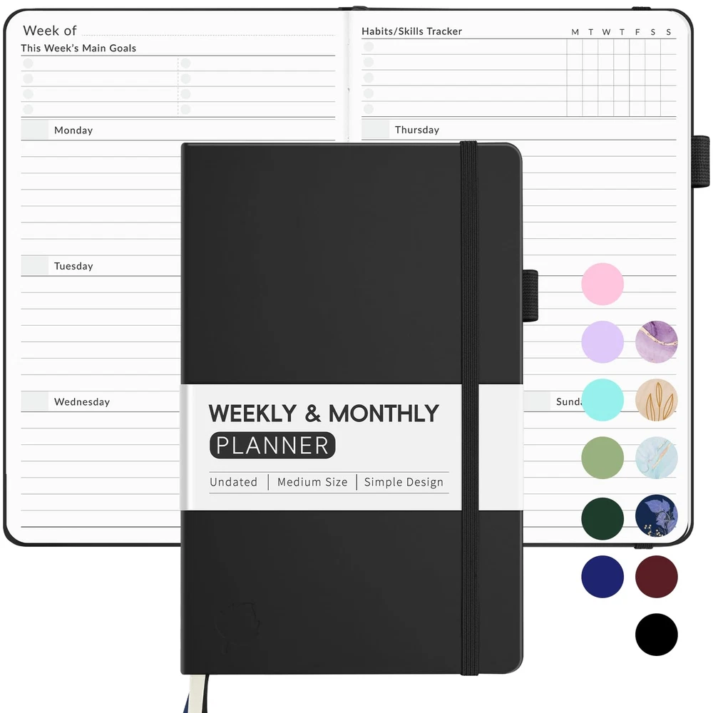 Undated Weekly Planner for 2024-2025, Forvencer Simplified Weekly & Monthly Calendar Planner, Cute Daily Organizer Notebook, Agenda Journal to Track Goals & Tasks, Start Anytime, A5 Size, Black Undated Planner with Simple Layout: Come with 12 months of monthly and weekly pages, providing a fresh start for an entire year at any time! This planner features a simplified layout for ease of use, offering spacious writing space to plan your schedule freely. Monthly Calendar & Weekly Planner: Each monthly spread with large date box helps you easily mark appointments, agenda, important dates, bills due, etc. Weekly two-page spreads provide generous lined writing space for more detailed planning, helping you keep track of daily tasks and develop habits or skills. Additional Planner Features: This calendar planner starts with Yearly Goals and Mind Map pages for goal setting and thoughts organization. It also includes holiday lists to keep on top of your special dates, contact page and extra notes pages to jot down your thoughts. Trusted Quality for Full Year Use: Adopted 100GSM thick paper for easy writing and preventing ink bleeding. Measuring 5.4" x 8.4", perfect size to fit in your purse or backpacks and take anywhere. Our cute planner also features an inner pocket, pen loop, and ribbon bookmarks. Organize Your Day & Keep Focus: How tricky it can be when a thousand things buzzing around your head! This planner journal is definitely a life saver, helping you stay focused on your tasks throughout the week. Use this notebook to simplify your life and organize your day for maximum efficiency. Undated Planner with Simple Layout: Come with 12 months of monthly and weekly pages, providing a fresh start for an entire year at any time! This planner features a simplified layout for ease of use, offering spacious writing space to plan your schedule freely. Monthly Calendar & Weekly Planner: Each monthly spread with large date box helps you easily mark appointments, agenda, important dates, bills due, etc. Weekly two-page spreads provide generous lined writing space for more detailed planning, helping you keep track of daily tasks and develop habits or skills. Additional Planner Features: This calendar planner starts with Yearly Goals and Mind Map pages for goal setting and thoughts organization. It also includes holiday lists to keep on top of your special dates, contact page and extra notes pages to jot down your thoughts. Trusted Quality for Full Year Use: Adopted 100GSM thick paper for easy writing and preventing ink bleeding. Measuring 5.4" x 8.4", perfect size to fit in your purse or backpacks and take anywhere. Our cute planner also features an inner pocket, pen loop, and ribbon bookmarks. Organize Your Day & Keep Focus: How tricky it can be when a thousand things buzzing around your head! This planner journal is definitely a life saver, helping you stay focused on your tasks throughout the week. Use this notebook to simplify your life and organize your day for maximum efficiency. Shipping from the USA All of our products are shipped from the USA, ensuring quick delivery to your destination. Payment We offer the following payment methods: PayPal, credit card, bank transfer, and eBay's secure payment system. Free Shipping & Free Returns Shipping within the USA is FREE. Additionally, any return is absolutely free for you. Risk-Free Purchase You have the option to return an item within 30 days without any justification. We cover the return shipping costs! Fast Shipping We ship immediately upon receipt of payment. Generally, the package is delivered within 2-3 days in the USA. If it takes longer, we will contact you. Quality and Costs Made in Europe, USA, China No customs fees or additional charges Total satisfaction guarantee Invoice with declared VAT available upon request in .pdf format Feedback Your feedback is very important to us. After you pay for your purchase, you will automatically receive positive feedback from us.