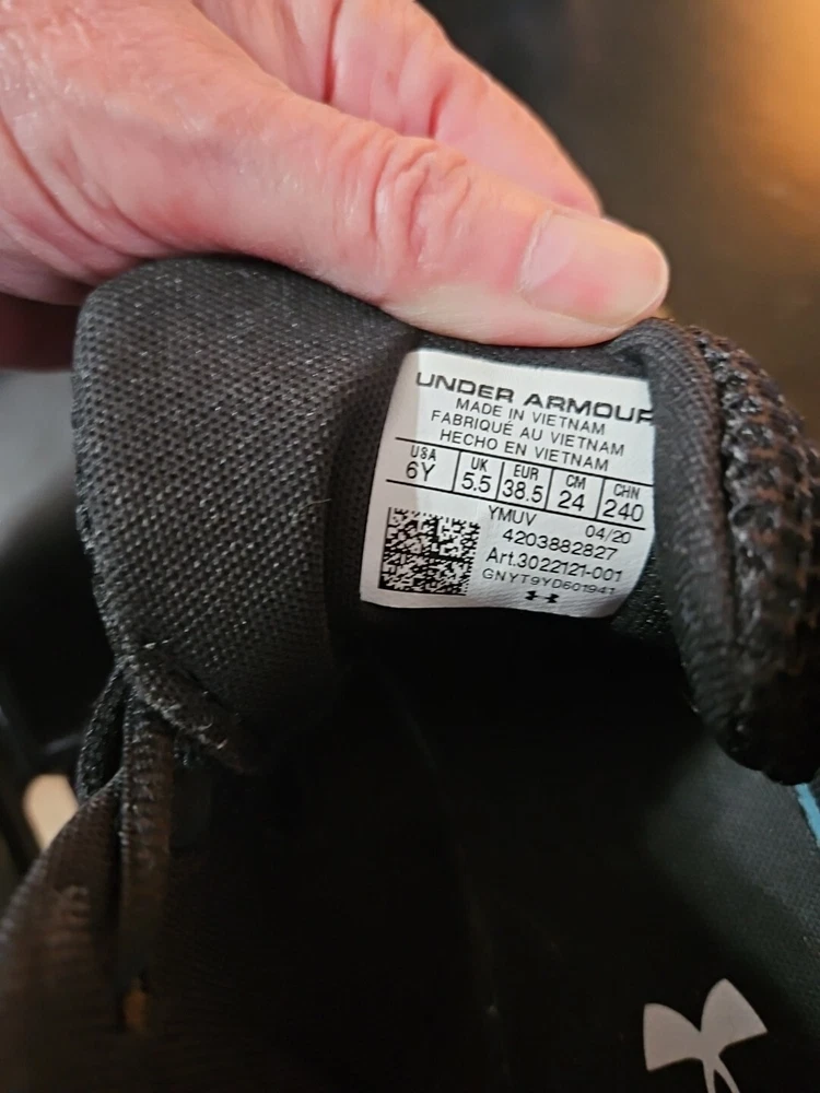 Under Armour Boys Sneakers 6ize 6Y Black