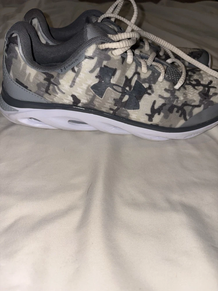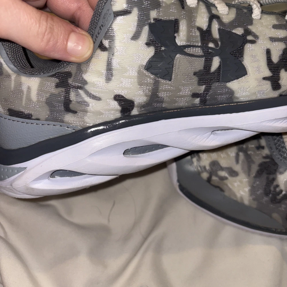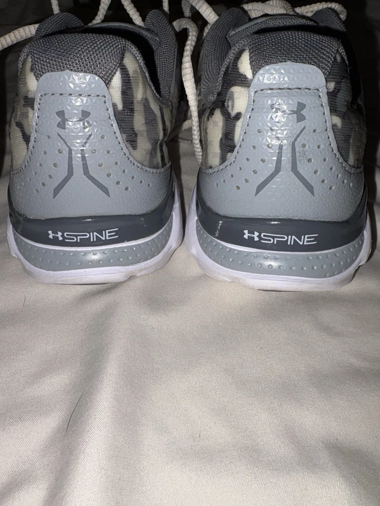Experience the perfect blend of style and comfort with these Under Armour Men's Grey Spine Sneakers. Designed for the active individual, these sneakers feature a sleek camouflage pattern and the signature Under Armour craftsmanship, ensuring both fashion and functionality. The breathable textiles and rubber outsole provide comfort during any activity, while the standard shoe width and lace-up closure offer a secure fit. With a US Shoe Size of 8.5, these low-top sneakers are tailored for individuals who value versatility in their athletic wear. Ideal for a range of activities, the Under Armour Spine sneakers are a testament to contemporary style meeting athletic performance. Whether you're hitting the gym or exploring the outdoors, these shoes are built to keep up with your lifestyle.