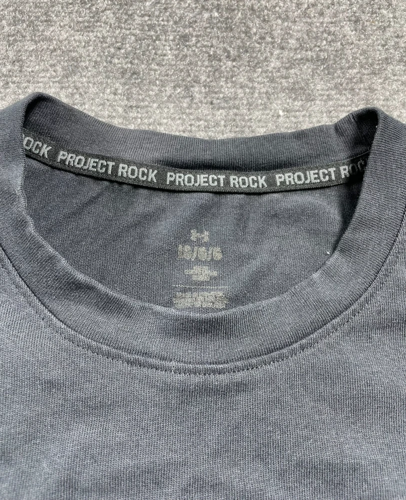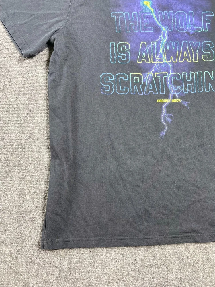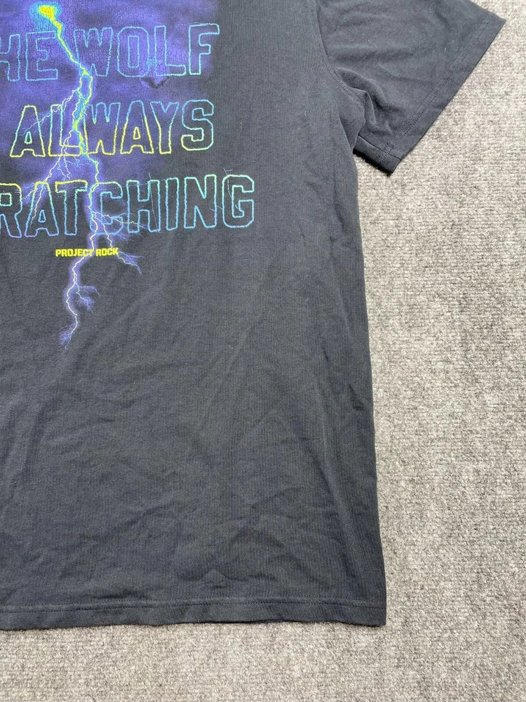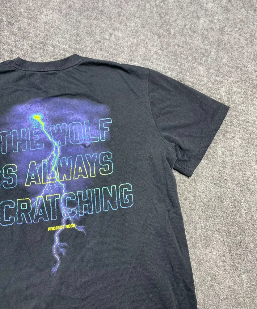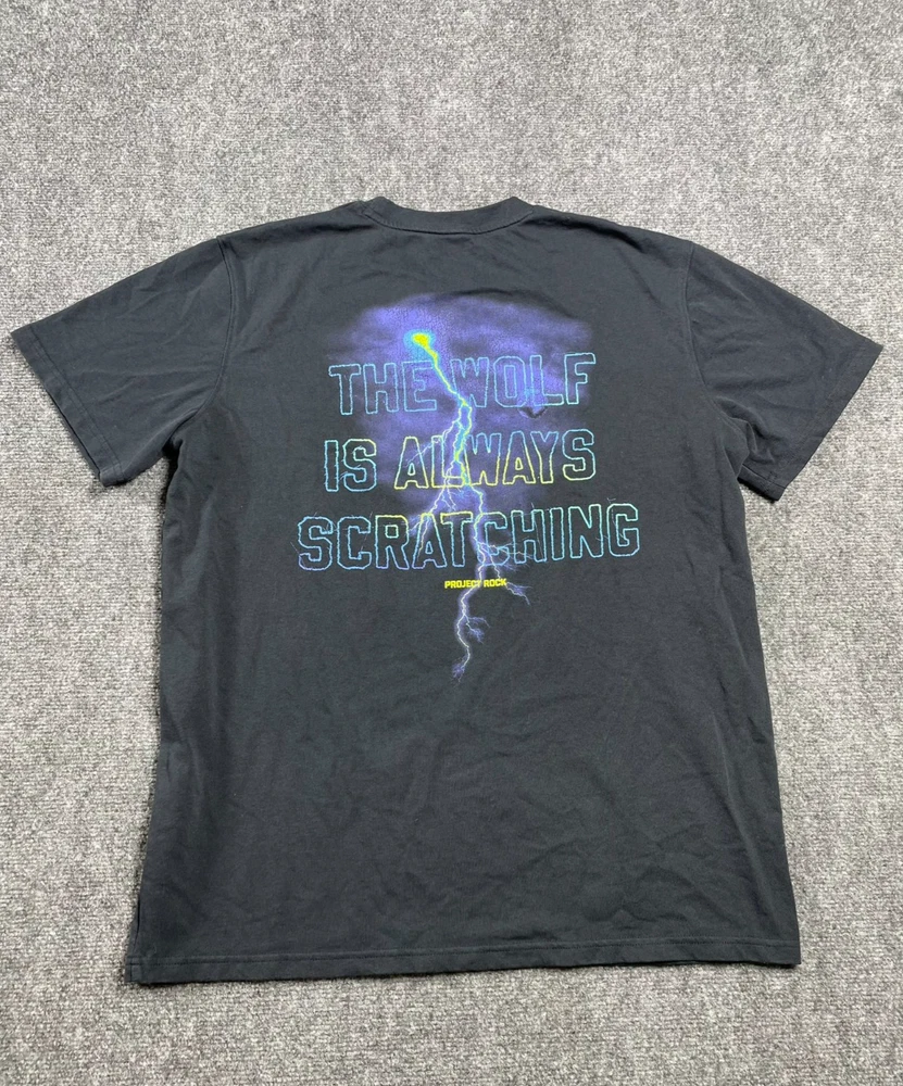 This Under Armour men's t-shirt is a must-have addition to your wardrobe. Featuring a graphic print with the character Rock and a wolf theme, this heavyweight shirt is perfect for any occasion, whether you're traveling, working out, or just running errands. Made of a blended fabric of 60% cotton and 40% polyester, this shirt is machine washable and has a regular fit. With a crew neck and short sleeves, this shirt is ideal for summer, fall, or spring. It has a pullover closure and is available in size L. The shirt is designed for various activities, including rugby, cycling, hunting, and more. It is a part of the Under Armour Project Rock product line and is suitable for men who love 80s and 90s fashion.