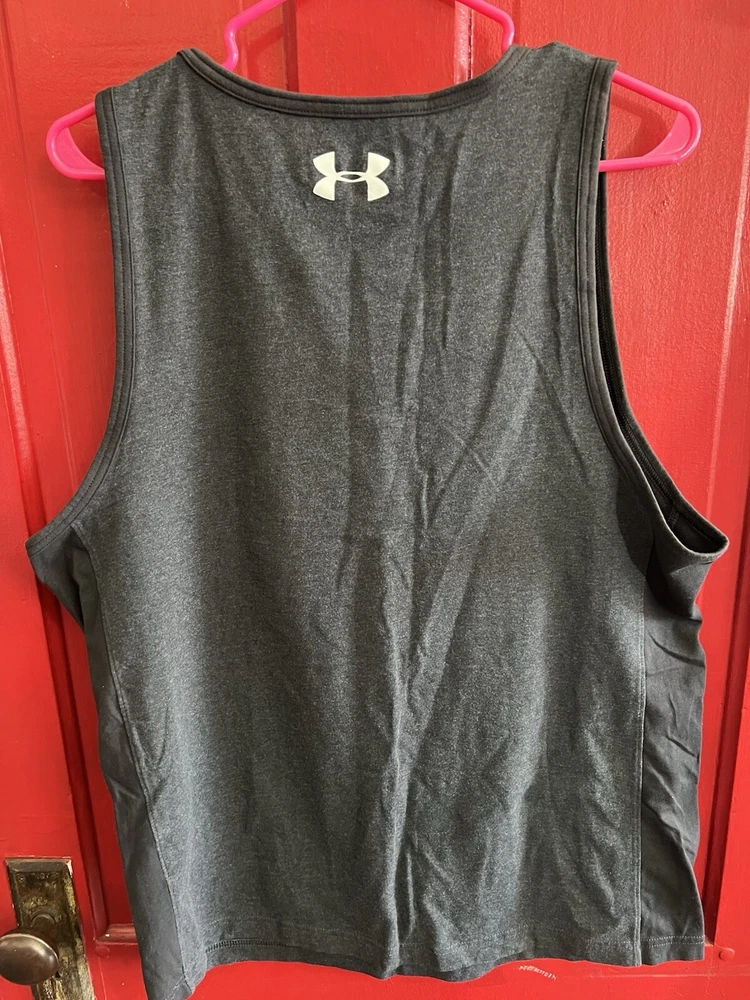 This Under Armour tank top shirt is perfect for any gym and training activity, as well as for casual wear and workwear. The shirt is made of woven fabric that is breathable and suitable for all seasons. It features a solid pattern, crew neck, and sleeveless design, with a pullover closure for convenience. The gray shirt has a regular fit and is available in size large. It showcases the Under Armour logo for a classic and modern sports theme. This tank top shirt is ideal for gym and training, walking, beach, cross training, CrossFit, basketball, running, and jogging.
