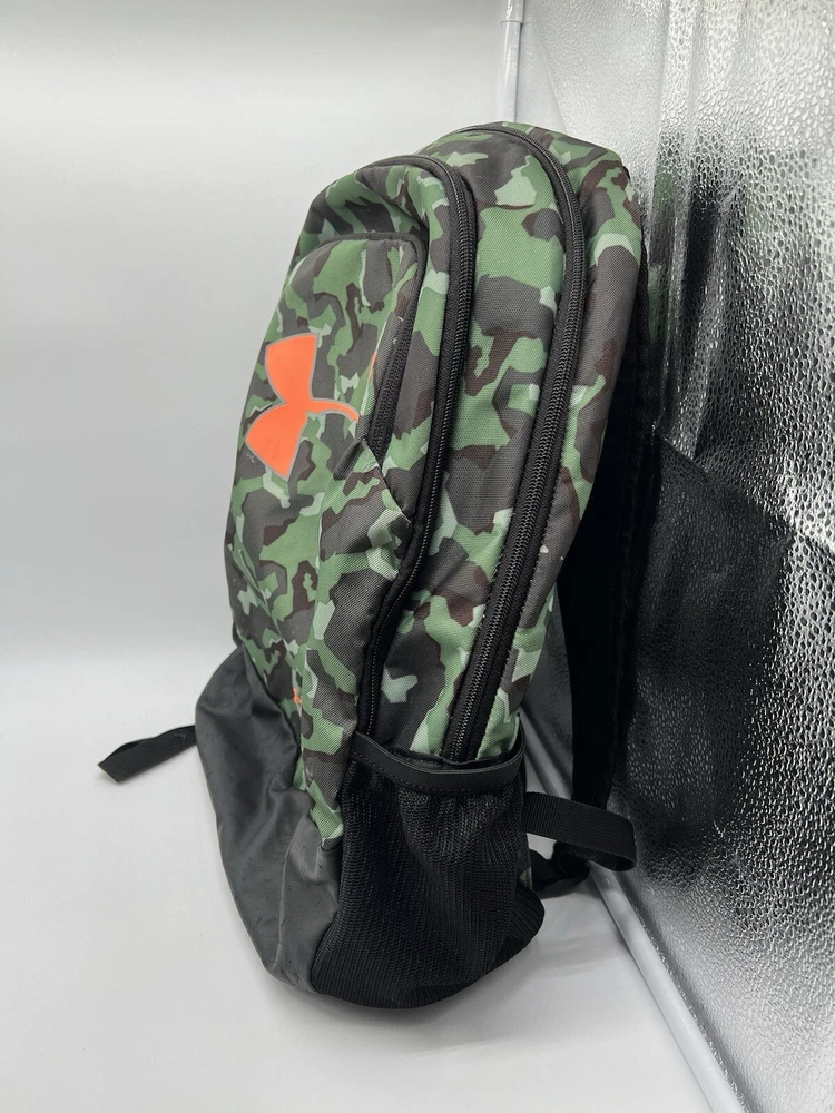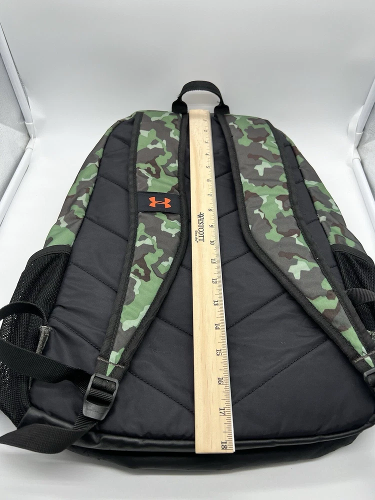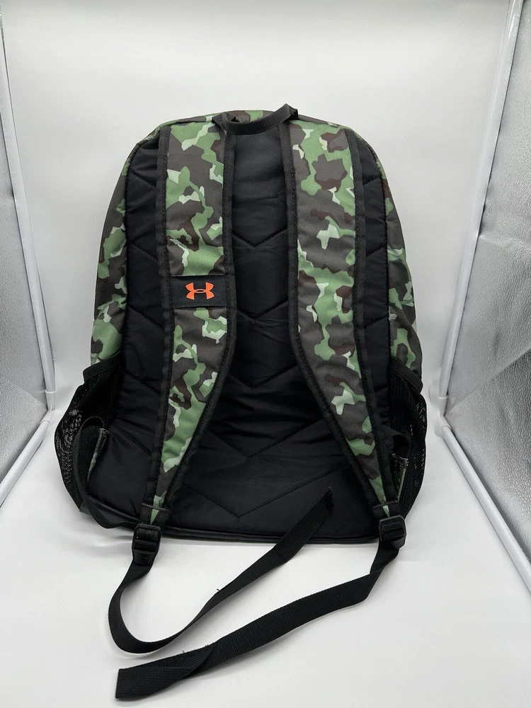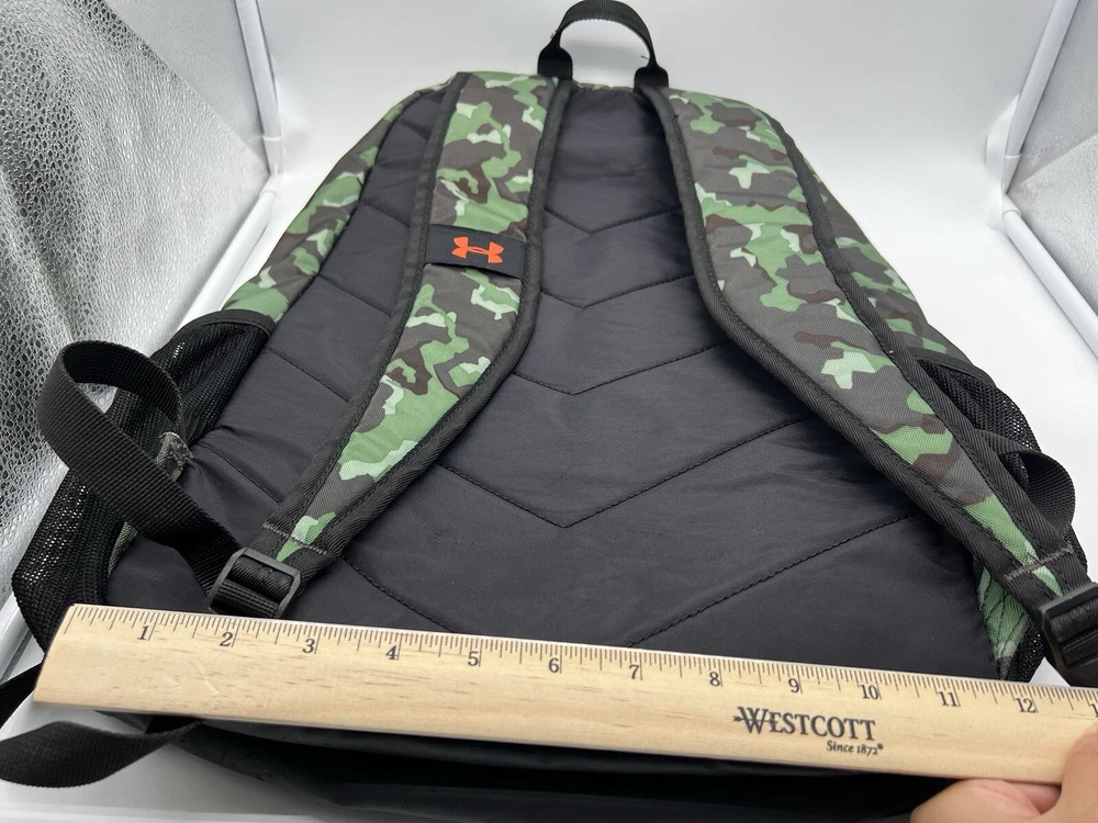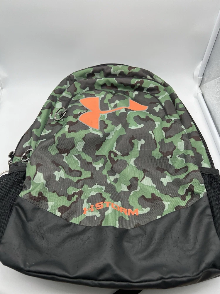 Under Armour UA Backpack Storm Green Camo Laptop Sleeve Organizer Used, Poor Condition. Logo missing part and dirty spots same like pictures showed. Item: N26(7)