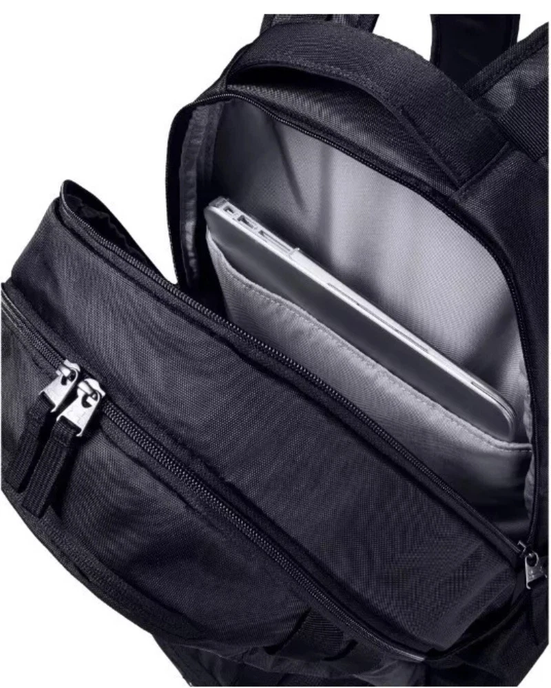 Under Armour UA Hustle 5.0 Backpack in Black is a versatile and stylish backpack designed for both men and women. It features a solid pattern and a storm character design. The backpack has a zip closure and is made of polyester material. With multiple features like inner pockets, inner dividers, laptop sleeve, mobile phone pocket, outer pockets, and bottle pocket, this backpack is perfect for school, sports, and travel. The adjustable strap, lined pockets, and waterproof material make it a durable and comfortable choice for everyday use. Shipping is FAST AND FREE! We ship all items with the utmost care.