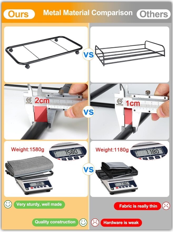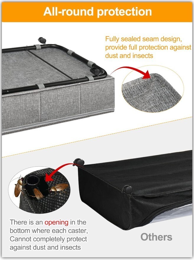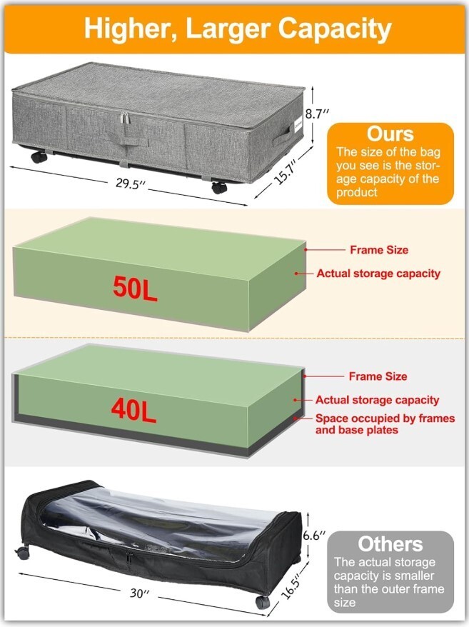 under Bed Storage with Wheels Lids 2 Pack, 8.7 Inch Tall Large 50L Underbed Stor About this item Metal & Fabric METAL SUPPORT BOTTOM: Compared with other products that use Oxford belt to provide support in the middle, we use METAL strips that are more sturdy and less prone to deformation, which can provide you with a long storage solution. The bottom frame is made of reinforced steel tube bracket, the load-bearing capacity is up to 50 pounds. EXTRA LARGE CAPACITY: Each underbed storage with wheels measures 29.5*15.7*8.7 inch, making it the ideal size for storing a variety of household items. The perfect solution for organizing your home and maximizing space TWO-IN-ONE DESIGN: The bottom frame and the underbed storage bag are fixed by Velcro. underbed storage containers can be used under the bed together with the metal frame, which can help you push and pull out more easily to put or take items. And the under the bed clothes storage can be used alone under the bed or in the closet. You can customize the use according to your needs 360°ROTATING WHEEL: Compared with ordinary under bed bins under the bed. This under bed rolling storage is equipped with four smooth wheels, two of which have locking function. When you need it to remain stationary, just press the locking mechanism gently. No matter how full the cart is, adults and children can easily slide on the floor and carpet MULTI-PURPOSE: Put away things laying around or out-of-season items. Use in the attic, basement, closet, coatroom, bedroom, baby nursery, under cribs and in dorms to protect and store seasonal and everyday items, holiday decorations, and memorabilia. Organizing it was simple! Also, it's a fantastic college dorm room accessories for college students Specifications Color Grey 2pcs-8.7'' Tall Material Linen Special Feature under the bed clothes storage, underbed storage with lid, underbed storage containers, under bed storage for clothes, under the bed storage containers Recommended Uses For Product For storage, Clothes, Shoe storage Product Dimensions 29.5"L x 15.7"W x 8.7"H Capacity 50 Liters Closure Type Flip Top Water Resistance Level Waterproof Item Weight 7.2 Pounds Opening Mechanism Zipper Shape Rectangular Pattern underbed storage Number of Items 2 Storage Volume 50 Liters Number of Compartments 1 Unit Count 2.0 Count Item Package Quantity 1 Maximum Weight Recommendation 50 Pounds Item Weight 7.23 pounds Finish under bed rolling storage Number Of Pieces 2 Handle/Lever Placement under bed storage Usage under bed storage with wheels Included Components underbed storage with wheels, underbed storage drawers with wheels, under bed storage with wheels and lid, under bed storage containers with wheels, under the bed storage with wheels Shipping Tracking number: Available We use a selection of shipping services such as UPS, FedEx, USPS etc. We only ship to the lower 48 states, no APO/FPO addresses or PO Boxes allowed. Local pickups and combined shipping options are not provided at this time. Tracking number: Available We use a selection of shipping services such as UPS, FedEx, USPS etc. We only ship to the lower 48 states, no APO/FPO addresses or PO Boxes allowed. Local pickups and combined shipping options are not provided at this time. Contact us We can be contacted at any time through eBay messages if you have any questions, comments or product requests. We will respond to you within 24 hours and do our best to help you out! We encourage our customers to contact us with any questions or concerns! We'd like to be sure you are completely satisfied with your purchase.