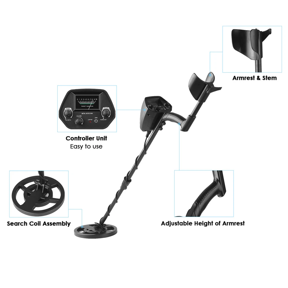 Need to find gold & silver jewelry, coins and other metal in the ground? Try this one. With this powerful and versatile metal detector, you can hunt for coins, relics, jewelry, gold and silver everywhere. It is also widely used in detecting aluminum, copper and rare metals and anywhere that hidden metal needs to be detected. Features: Practical Metal Detector: perfect for finding metal objects and anywhere that hidden metal needs to be detected. Besides, this easy to operate metal detector suitable for research or educational use as well. Designed to Find Metal: with ALL METAL & DISC two modes to search gold & silver jewelry, coins and other metal in the ground. Adjustable Height of Metal Detector: adjust the detector's length for comfortable use. Detection Indication: audio alert and pointer indicate the detection of metal. Waterproof Search Coil: you can use the metal detector in the shallow water. Volume Control: adjust the output volume of the loud speaker or headphone. Wide Applications: testing metal foreign body of raw materials, fuel and food, detection of underground pipeline & line, archaeology, exploration, found buried treasures of gold, silver and metal artifacts, the acquisition of scrap metal industry, customs and safety inspection, police department detective search, checking metal foreign bodies in express delivery and luggage, etc. Headphone Jack: provided for headphone connection, headphone with 3.5mm jack can be used. Specifications: Type:With Headphone & Plastic Shovel Material: ABS plastic + aluminum Frequency: 6KHz Voltage Range: 7.2~9.6V Display Mode: Mechanical indicator mode, sound mode Operating Mode: All metal, disc Sensitivity: >18cm / 7.09" (Test Coin: 1 CNY) Distinguish: Ferrous and non-ferrous Sensitivity: Adjustable Volume: Adjustable Headphone Jack: 3.5mm Battery Condition Indicator: YES Detect Objects: Metal(Iron nail, iron covering, aluminum ring, small aluminum product, coins, gold, bronze, silver) Detection Depth: 15-30cm / 3.94-11.81inch Power Supply: 2 * 6F22 9V battery (NOT included) Search Coil Diameter: 202mm / 7.95in Adjustable Height of Detector: 82-113cm / 32.28-44.49inch Metal Detector Weight: 350g / 12.35oz Package Size: 45 * 21 * 11cm / 17.72 * 8.27 * 4.33in Package List: 1 * Metal Detector Main Unit 1 * Armrest 2 * Connecting Rod 1 * Search Coil 1 * Plastic Shovel 1 * Headphone 1 * User Manual (English) Your satisfaction is our eternal pursuit