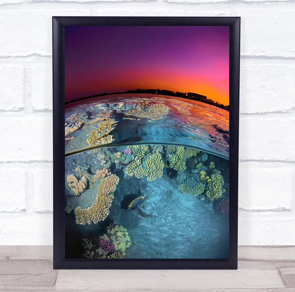 Underwater Dusk Sea Oceanic Colourful Colourful Building Water Wall Art Print