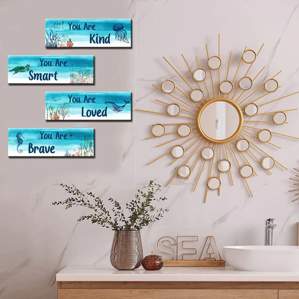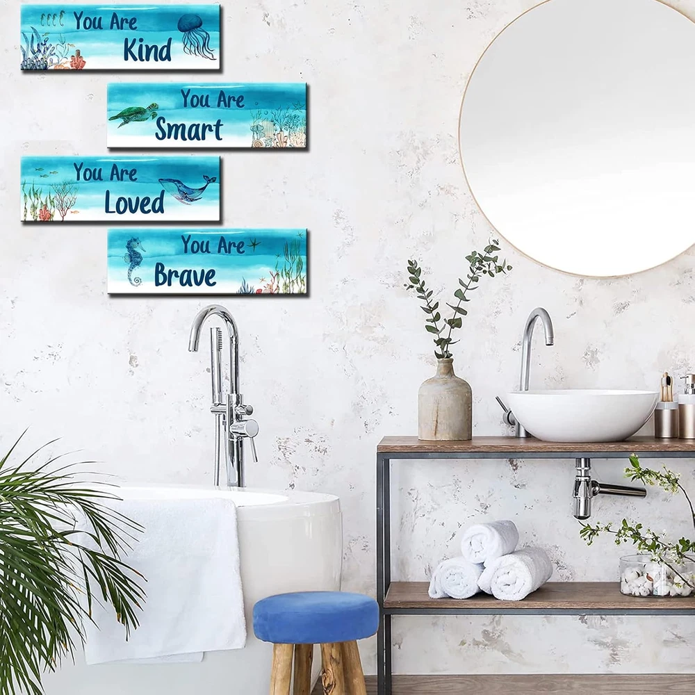 Unit Count: 4 count Paper Finish: Smooth Recommended Uses For Product: Decorating various rooms in the house Special Features: Waterproof Type: Does not apply Number of Items: 4 Indoor Outdoor Usage: Indoor Paint Type: Underwater Size: 12 X 4X 0.2 inch Orientation: Landscape Room Type: Bathroom,Bedroom,Guest Room,Kitchen,Living Room,Office,Room Material: Wood Color Family: blue Color: artwork 08 Item Dimensions L x W: 12"L x 4"W Pattern: Rustic Mounting Type: Wall Mount Brand: Does not apply Item Shape: Rectangular Style: Retro Subject Character: Turtle Item Weight: 9.1 Ounces Frame Type: Unframed Theme: Nautical UPC: 7445007239269 Wall Art Form: Painting gtin13: 7445007239269 Animal Theme: Underwater creatures Frame Material: Wood