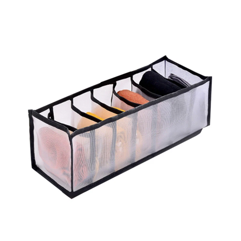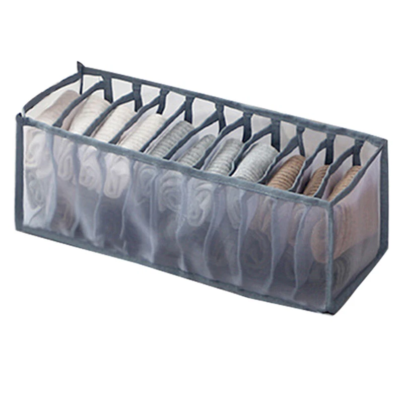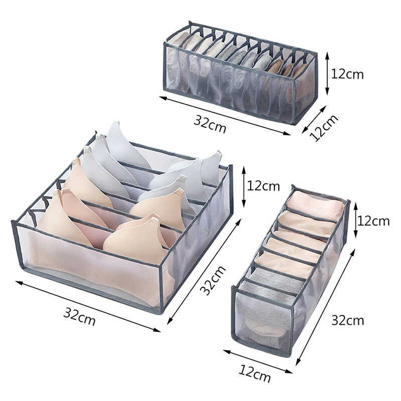 3 Sizes: Our bra organizer have 3 different sizes that can neatly store and classify undergarments and other personal items in a drawer or suitcase so that you can easy to access them while you need it. Perfectly Protect Your Clothes: These drawer organizer clothes are designed to offer great protection for your clothes, and keep your items in their original condition without being affected by the external environment. Durable Material: Our underwear organizer are made of nylon material, which is very strong and durable and is not easy to deform, and our workmanship is very delicate and not easy to open the thread. Easy to Clean: Each dresser organizer for women of different sizes has multiple grids, so you can put one in one grid, which is very clean and hygienic. And our dresser organizer can be washed by hand or machine, so it’s easy to clean. Space Saving: The clothes organizer are collapsible for easy storage and can be stored under bed or be stacked on shelves for convenient use, so even if you don’t use, the organization and storage drawers will not take up space. Product description Feature Our drawer organizers have 3 different sizes, and each size have multiple grids, so you can put all your scarves, ties, underwear, briefs, bra, socks etc. in it. And our sock organizer are made of foldable nylon mesh material, so it won't take up much space and it’s durable than others, and you can put it in the drawer or on the bed or on the shelf. So with these bra organizers, your drawer will be tidy and clean than before. Specification Dimension: 13 * 13 * 5 inch (6-Section) 13 * 5 * 5 inch (7-Section) 13 * 5 * 5 inch(11-Section) Color: Grey Material: Nylon Weight: 180g Package Include 1 * 6-Section Grey Bra Drawer Organizer 1 * 7-Section Grey Bra Drawer Organizer 1 * 11-Section Grey Bra Drawer Organizer Note: There is 2-3% difference according to manual measurement. Please check the measurement chart carefully before you buy the item. Please note that slight color difference should be acceptable due to the light and screen.