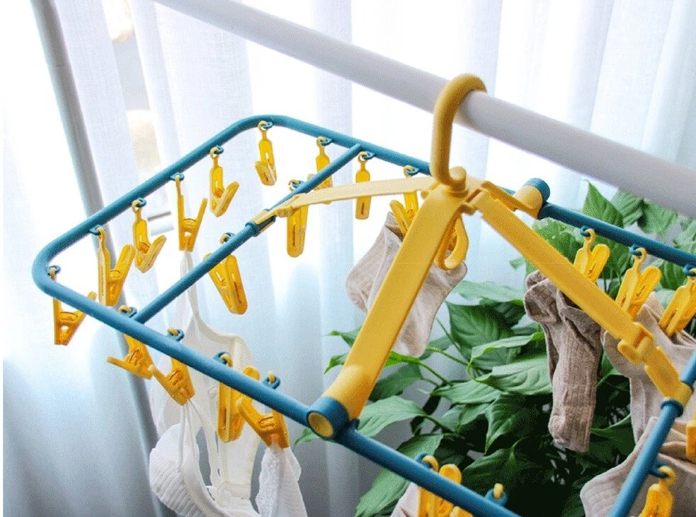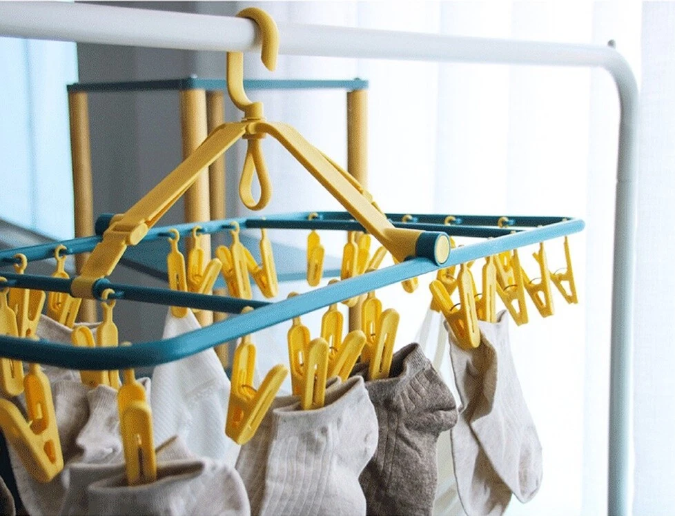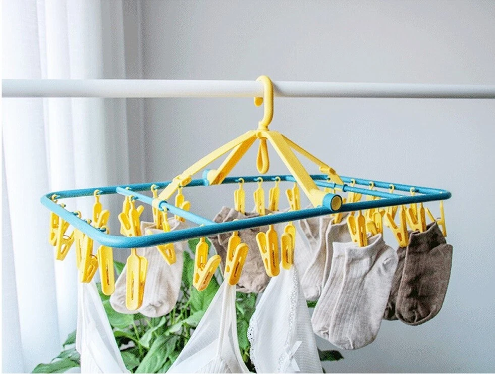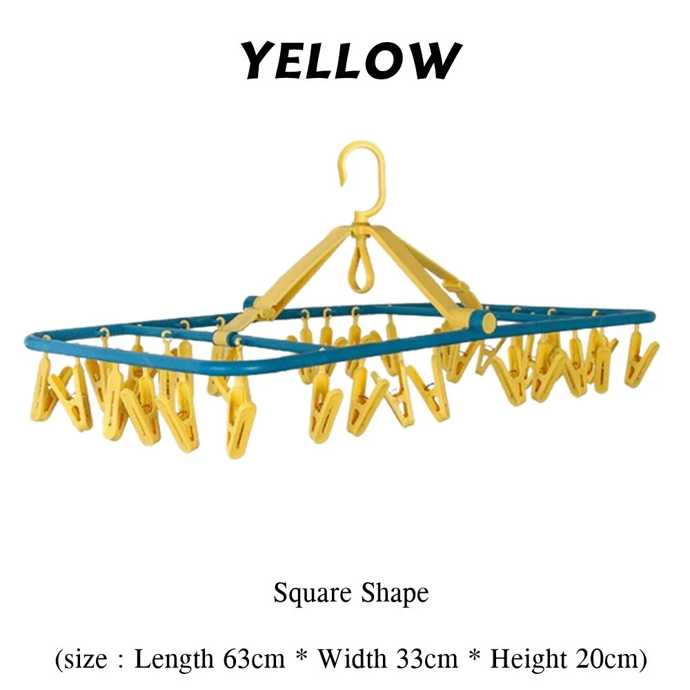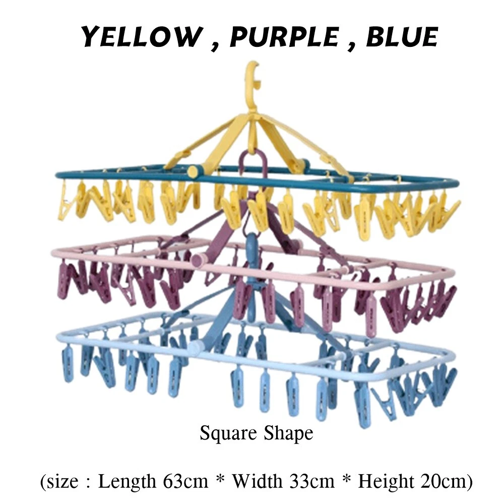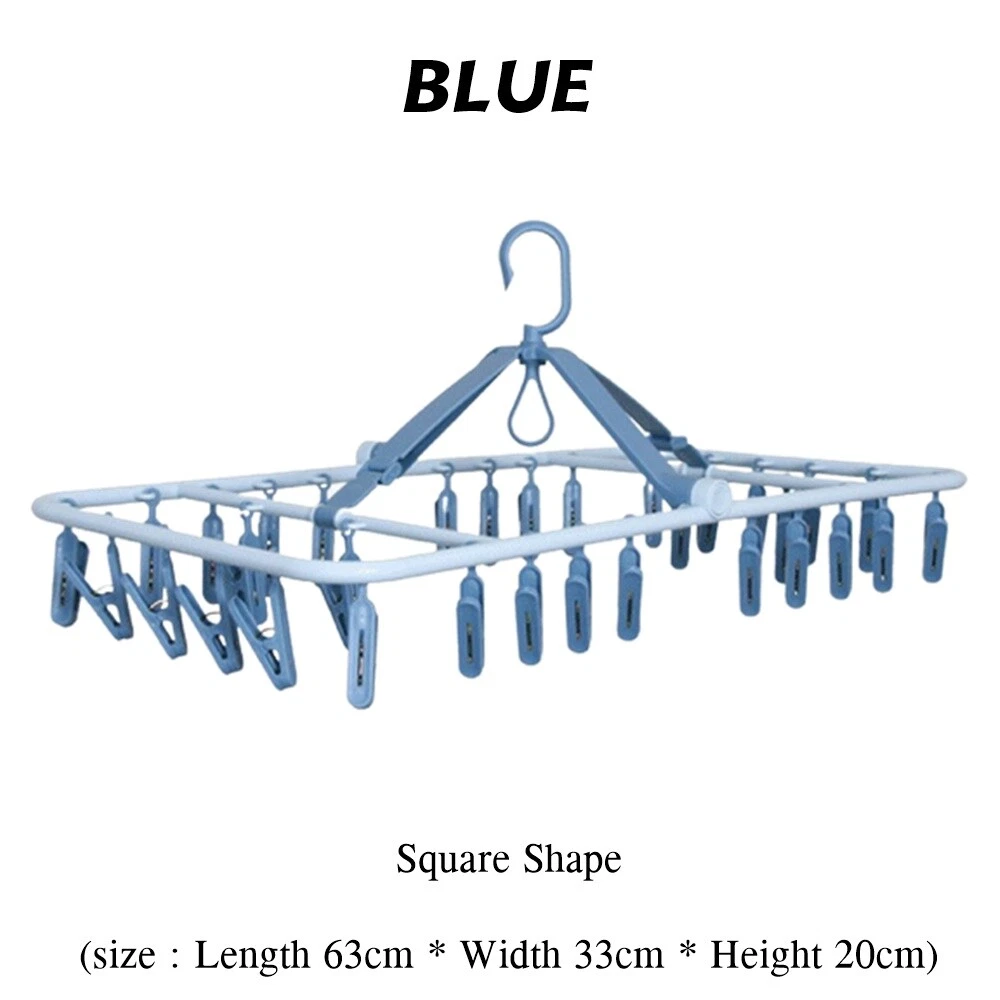 Underwear Hanger, Sock Hanger 100% ABS Plastic, Clothespin, Square Shape Wooden Clothes Hanger Desription Condition : New Type : Underwear Hanger. Size : Square Shape (size : Length 63cm * Width 33cm * Height 20cm) Quantity : 1 pc Product Details : 32 clothespins, underwear hangers sock hanger 100% ABS plastic, clothespin, square shape wooden clothes hanger Material : ABS plastic100% Feature : Washable, easy to clean A bunch of fabric with 32 clips. Don't worry about the clamp, brittle, broken. Thick ABS 100% plastic. There is a hook to lock to prevent wind. can rotate 360 degrees. Convenient, not cluttered can dry many pieces. Does not rust, comfortable to use. Save space.