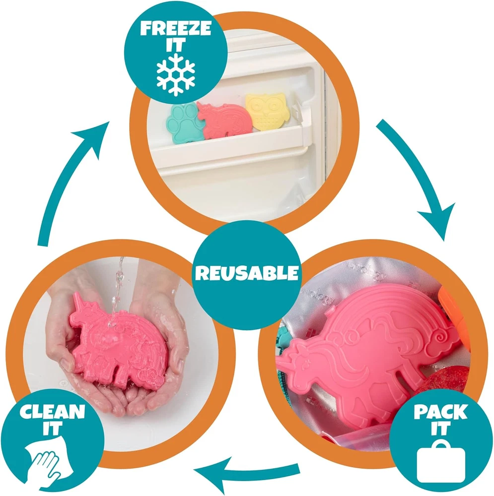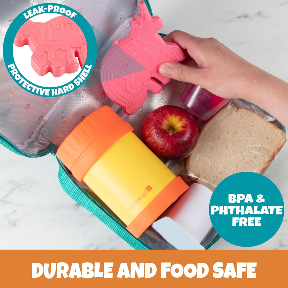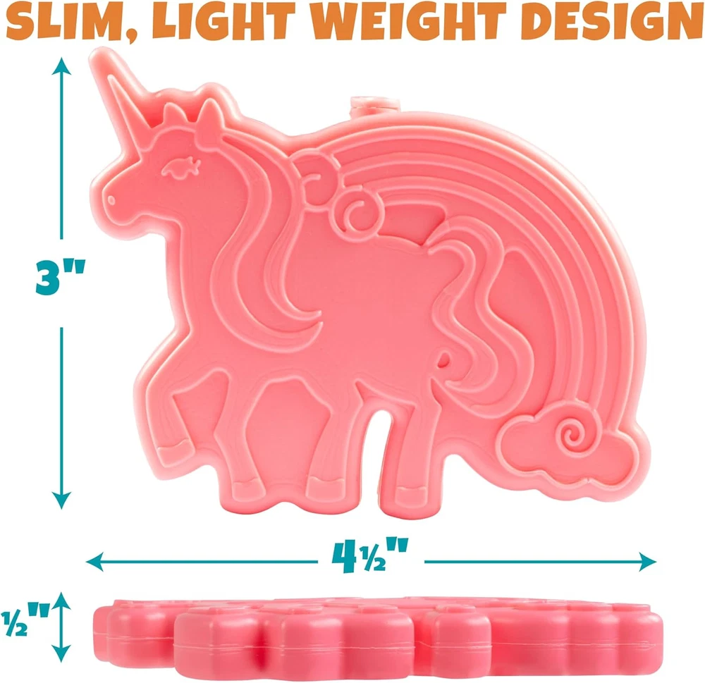Unicorn Reusable Hard Ice Pack- Set of 3- Fits Easily inside Kids Lunch Box, ...