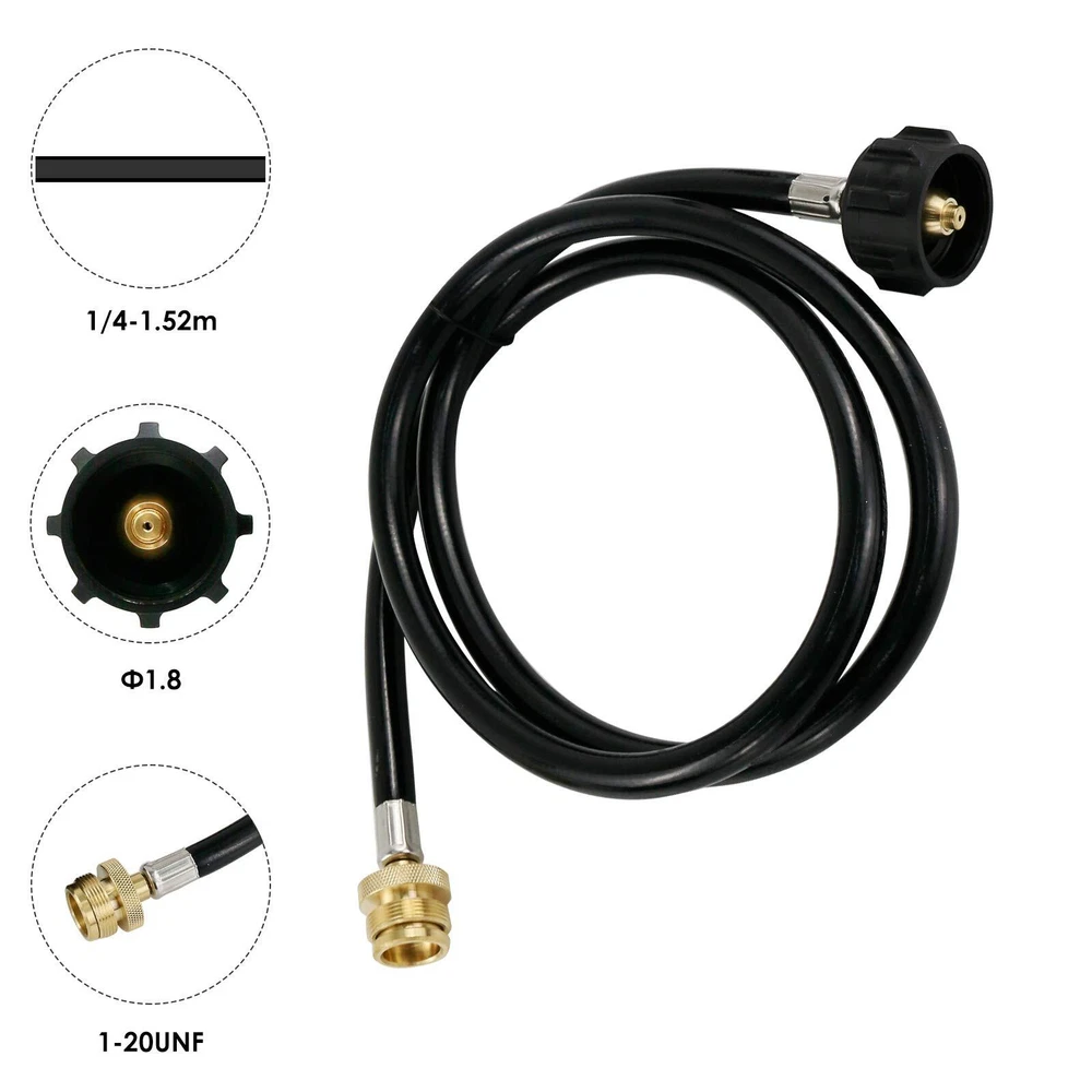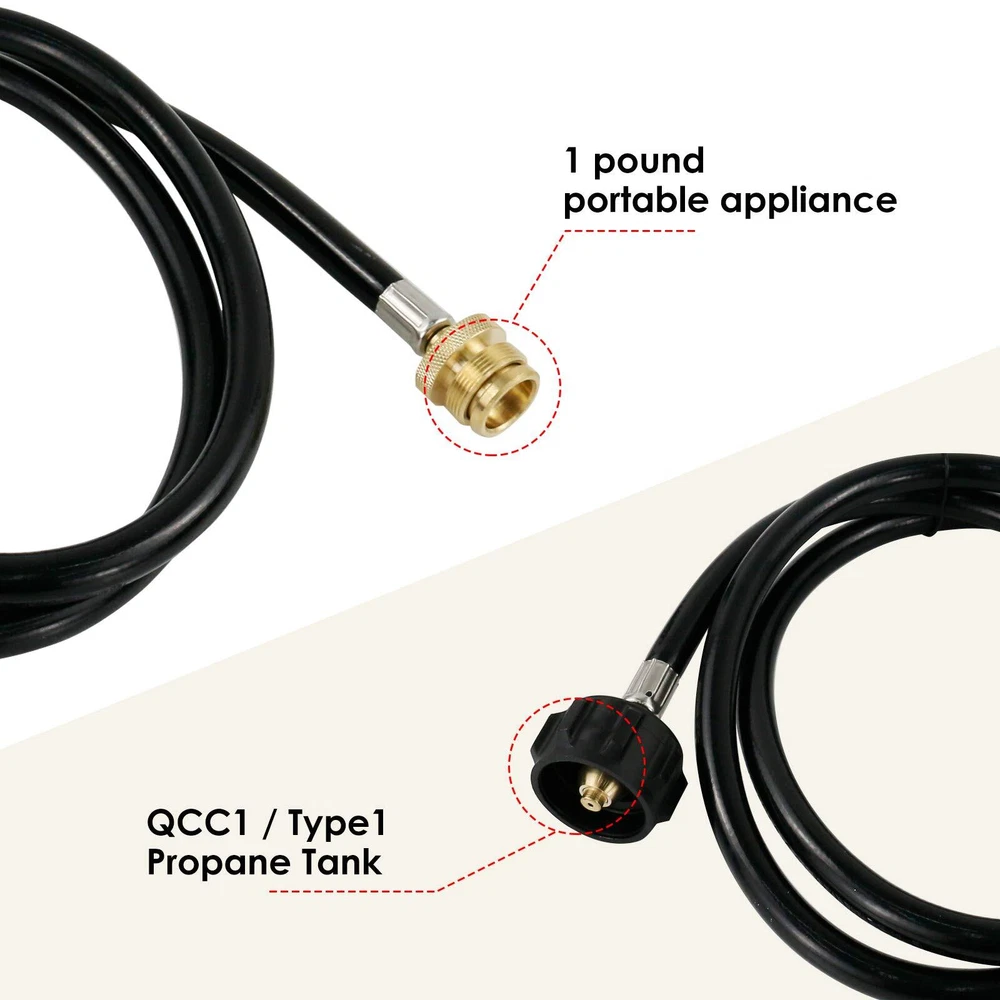 【Specifications】- Propane Hose Length: 5 Feet(60 Inch); Inlet: Type 1 – QCC 1, Converts: 1 lb – 20 lb Propane tanks for Weber Q 1200 1000 Gas Grill 【Multi-Suitability】- Propane hose works well with portable propane grill, tabletop griddle, camping stove, etc., perfect for Blackstone, Coleman, Weber, Mr.Heater, Go anywhere,Flame King. Great for camping, tailgating, heating needs or having an outdoor cookout 【Easily Operation】Ready for use anytime and anywhere out of the box. Hose with adaptor fitting let you hook your 1lb propane required propane appliance with 20 lb tank or lager by connecting this adaptor, Allows connection to more fuel 【Durable】 - This High Pressure Hose uses highest quality rubber to ensure you safe leakage free operation while providing excellent weather resistance, Safe and made of quality material.【Brass Connection】 - Durable solid brass provide secured connections, tank connection has excellent secure connection and durability, Long lasting and is easy to use 【Save Money】 - Stop spending your money on 16. 4 oz / 1lb propane tank that will last you few hour of usage, With this adaptor to utilize your 20lb tanks for your previously incompatible propane appliances. Each cylinder saved is money in your pocket