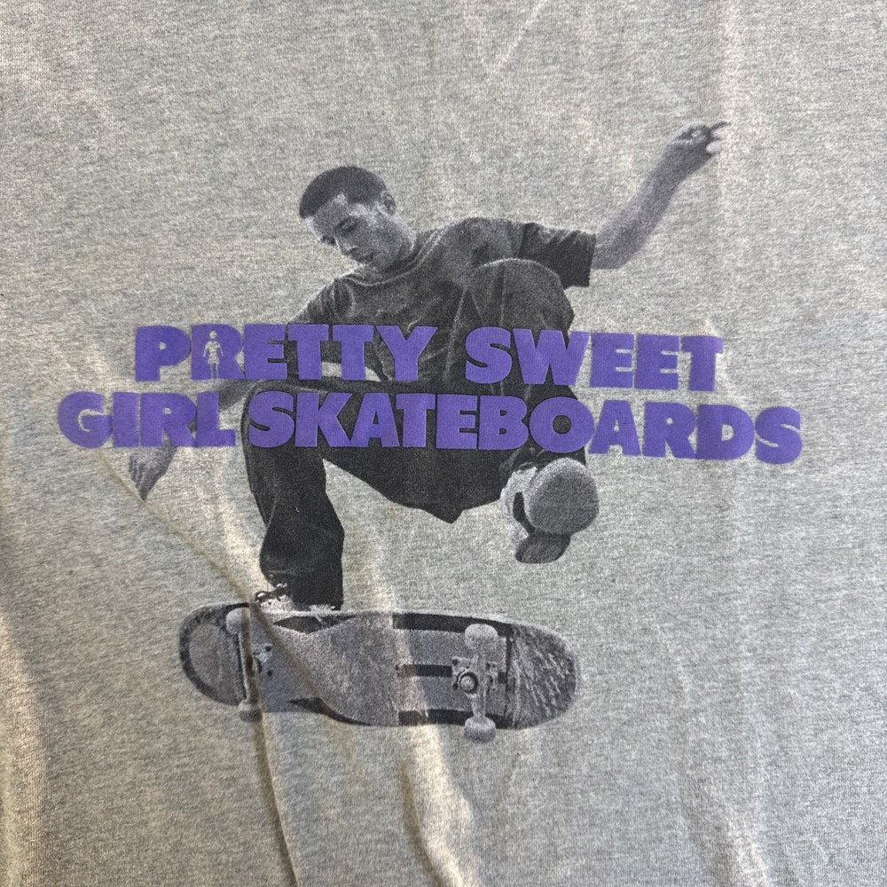 The Uniqlo x Girl Skateboards “Pretty Sweet Girl Skateboards” T-Shirt in size XL is a stylish and comfortable option for men looking to express their love for skateboarding. Made of breathable cotton material in a versatile gray color, this short sleeve tee features a round neckline and a regular fit. The graphic print design with the Girl Skateboards logo adds a trendy touch to the shirt, making it perfect for wear during the summer, fall, and spring seasons. Ideal for casual wear and skateboarding enthusiasts alike, this T-shirt is a must-have for any wardrobe. SKUH