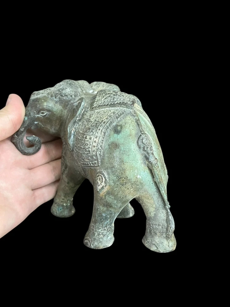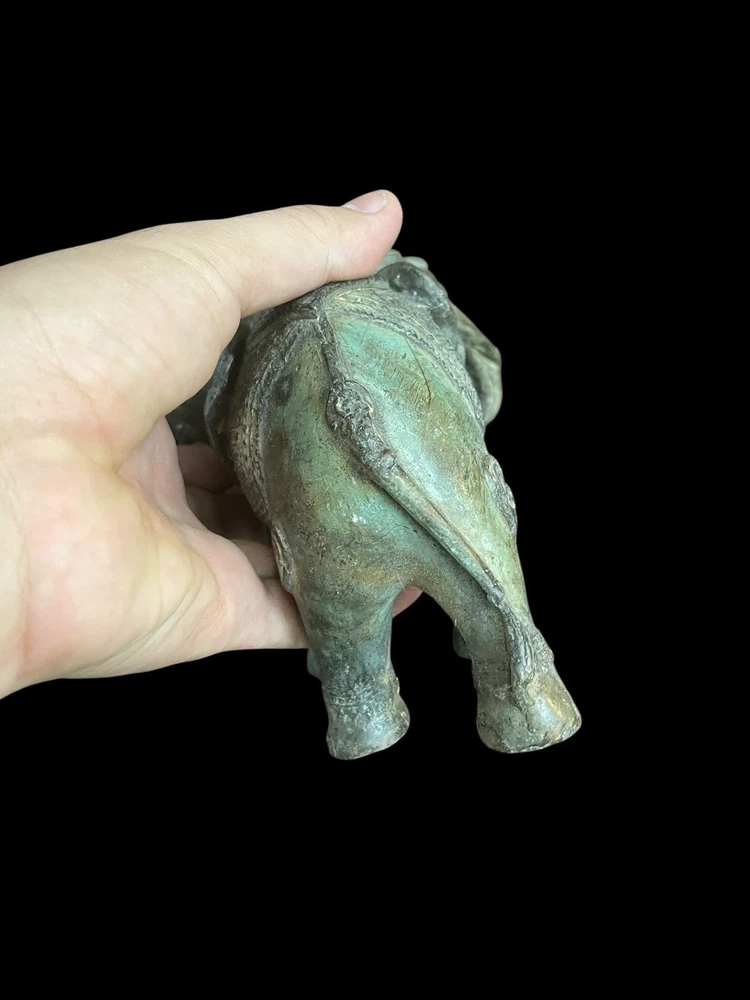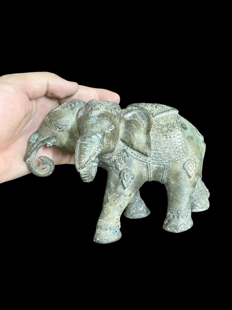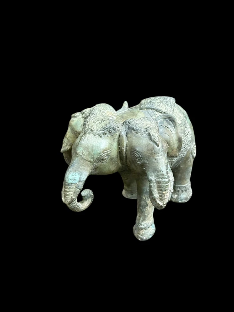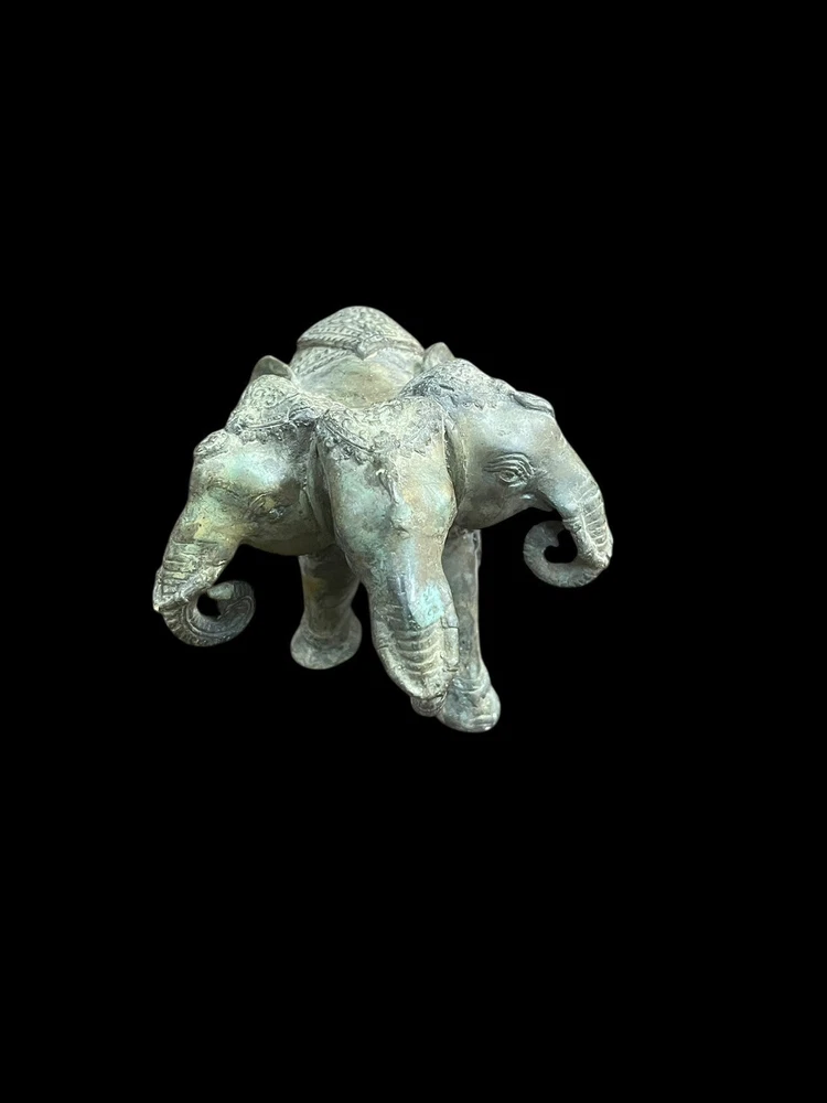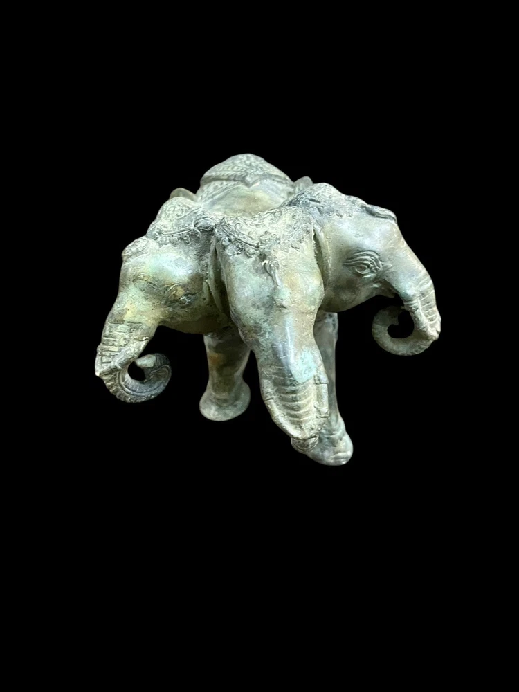 This unique Ancient Indo Greek bronze statue features a three-headed elephant, showcasing the intricate craftsmanship and artistic style of the period. Made of bronze, it is an original piece that captures the essence of ancient artistry. The statue's depiction of the mythical creature adds a touch of mystique and historical significance to any collection or display.