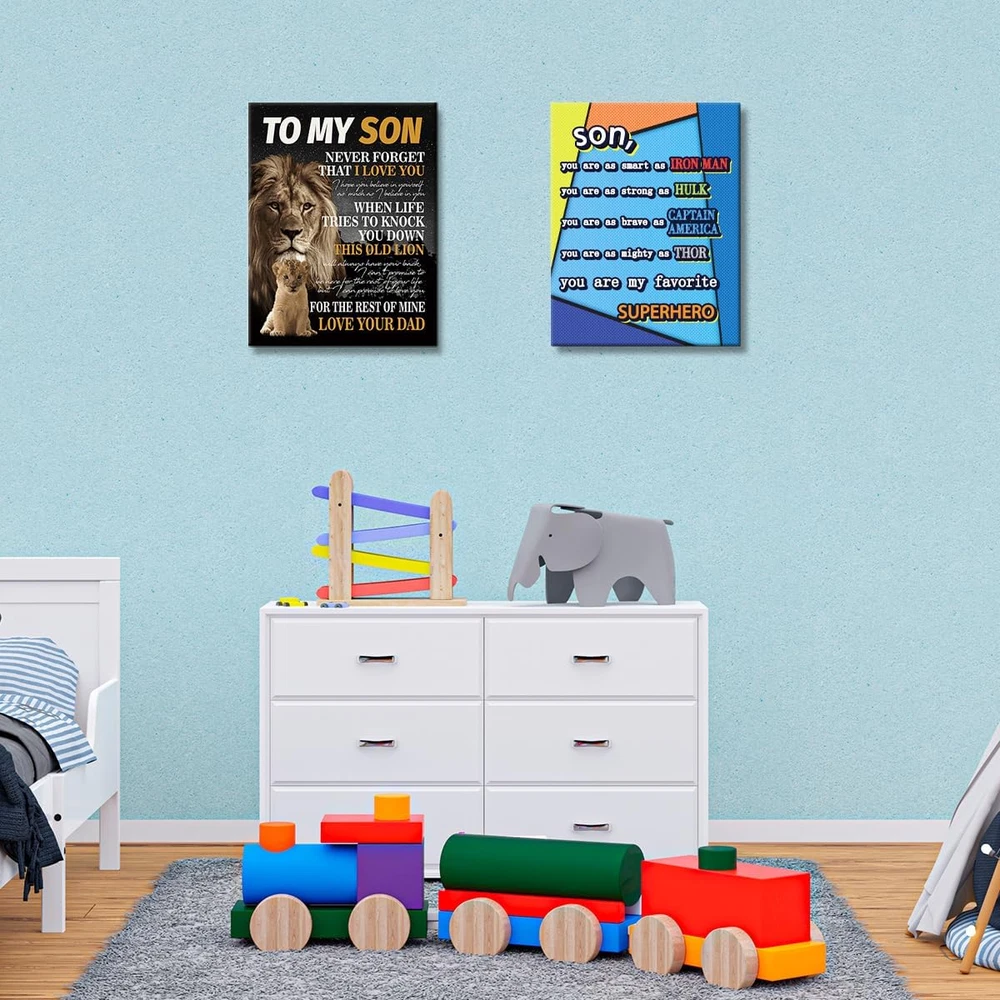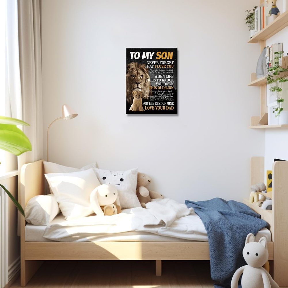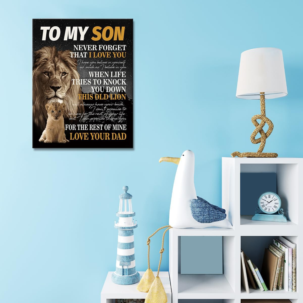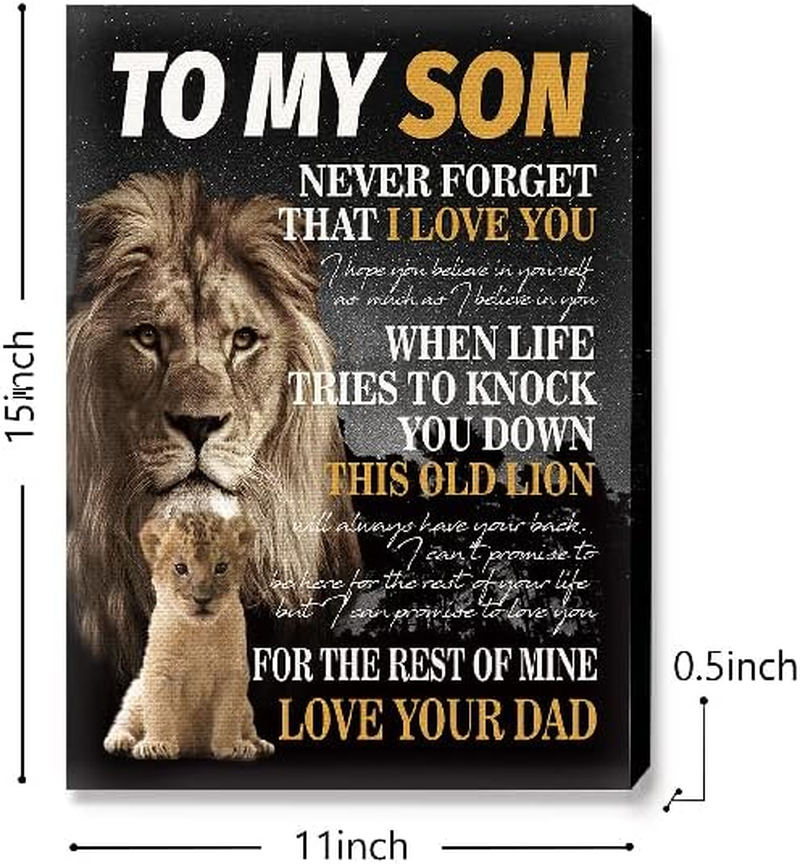 Store New Arrivals Add to Favorite View Feedback Contact Fast deliveries to the customer's home Quality customer service John Make the customers happy! Unique Birthday Gifts for Son from Dad,To My Son Poem Lion Canvas Wall Decor Ready to Hang for Son Bedroom Living Room College Dormitory Description HIGH QUALITY: HD prints on premium canvas, each panel of canvas prints already stretched on solid wooden frames. Ready to hang. EASE OF MAINTENANCE:Each canvas art is water resistant, UV resistant and fading resistant for years indoor. ART WALL SIZE: 15x11inchx0.12inch,Interior solid wood frame. PERFECT DECOR : This is a great home decoration gift for everyone. A perfect wall art for living room, bedroom, kitchen, office,reading room decor,etc. SPECIAL GIFT : This Perfect gift is the best gift for everyone. It will be the best gift for Birthday, Christmas, Thanksgiving, Mother's day, or Housewarming. Item Weight 7 ounces Color To My Son L Product Dimensions 15 x 11.3 x 0.2 inches ABOUT US We offer the best prices around on high quality products. Our E-store includes media such as books, movies, music and games while offering electronics, toys, sporting apparel, clothing, tools, general home, garden items and more. SHIPPING We are always working hard to ensure your package arrives as soon as possible. Please understand that some factors like weather, high postal traffic, and the performance of shipping companies are outside of our control. We offer free shipping to the lower 48 states and ship within 2 business days of payment, usually sooner. We do not accept P.O. Boxes. Please provide a physical address. For shipping outside of the continental USA, we only use eBay's Global Shipping Program. The item is shipped to KY and then sent to the rest of the world. International customers are responsible for all duties and taxes. Continue to 'check out' to calculate costs for shipping the item to your country. Messages regarding eBay's Global Shipping Program MUST be directed at eBay EXCLUSIVELY. RETURNS We offer a 30-Day Return Policy on items in which you are not completely satisfied with. You have the option of a full-refund or an exchange of the item. No returns are available on items shipped outside of the USA PAYMENT We accept PayPal. CONTACT US This page content is yet to come Please ad us to your favorite seller and visit again later Thank You CUSTOMER SATISFACTION We try our very best to make sure every customer is completely satisfied. If there's a problem, message us! We're happy to help. WE ACCEPT
