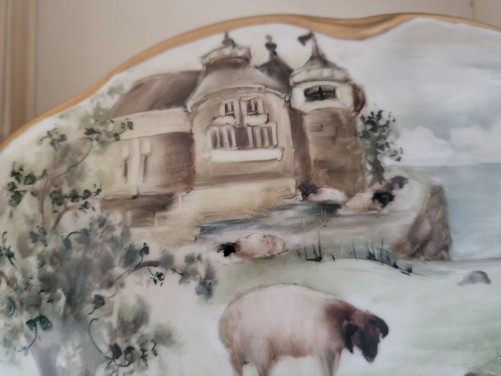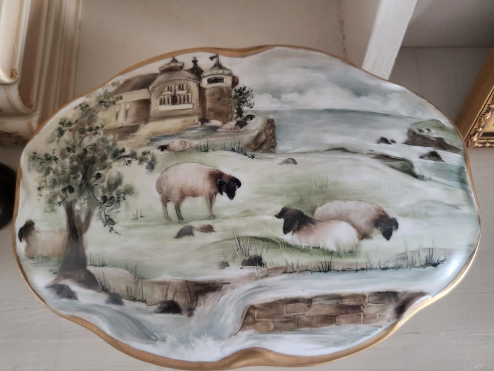Size:LargeMaterial:PorcelainSubject:LandscapeStyle:FrenchBrand:UnbrandedColor:MulticolorCountry/Region of Manufacture:UnknownTheme:castle and sheepType:Trinket BoxPattern:country FrenchShape:OvalFeatures:Hand Painted