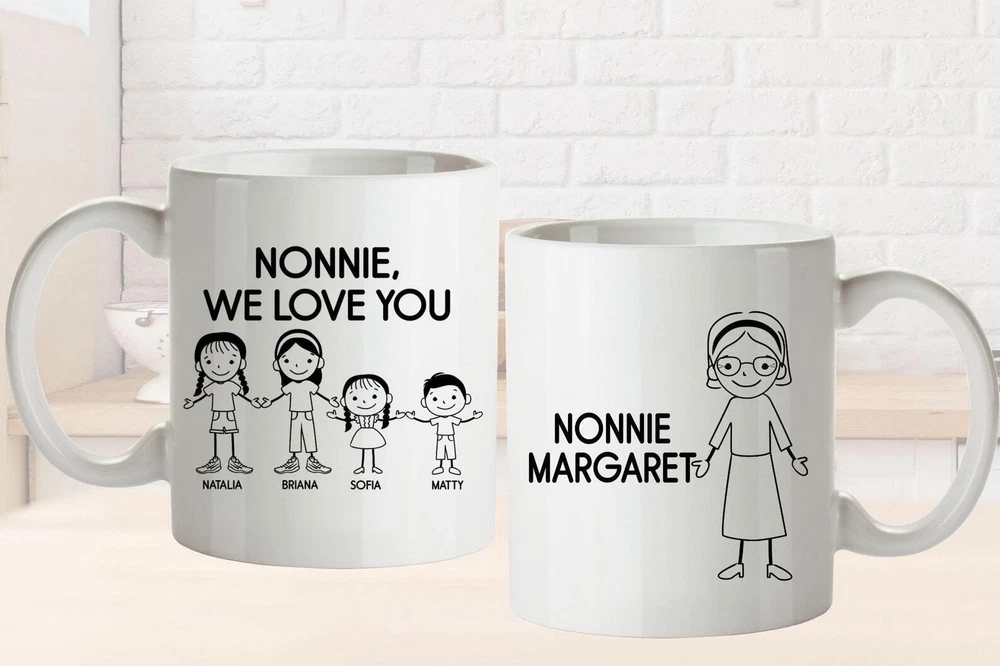 Unique Nonnie Grandmother Gift Mug L Personalized Stick Figure Family L Product Details.. This high quality 11oz. ceramic white mug has a premium hard coat that provides crisp and vibrant color reproduction sure to last for years. Perfect for all hot & cold beverages. The highest quality printing possible is used. It will never fade no matter how many times you wash it. Material: 100% Ceramic. Print both sides. Dishwasher and Microwave Safe. High Gloss + Premium White Finish. Printed in the U.S.A. Personalized & Custom. We support personalized and custom mug to add custom, when placing an order, you can add notes to the "order note" in shipping address section. Also you can contact us directly via message. Shipping Info. Ready to ship in 1 to 2 business days, All products are made-to-order and proudly printed in the United States. Shipped by USPS and DHL, You will receive your order in 5-7 days. Replace & Refund. All products are defective during shipping broken, chipped will be replaced free of charge. You are not satisfied with the product, we will refund 100% money to you. If any other issues arise, please do not hesitate to message, we would be more than happy to assist you.
