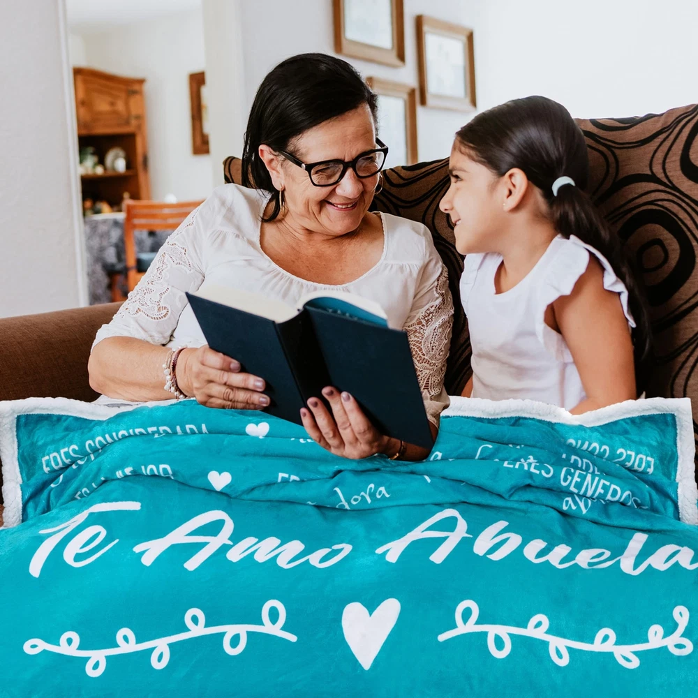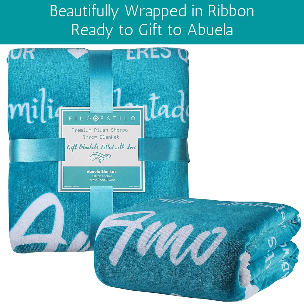 Celebrate Abuela in Her Language: Let Abuela know en español how much she is admired, adorada, appreciated and apreciada with a plush, cozy sherpa fleece throw blanket. A Gift for all Occasions: Un regalo especial para la Abuela. Perfecto en Navidad / Christmas, Dia de las Madres / Mothers Day or for Abuela's birthday / cumpleaños. Keep Abuela Snuggly, Warm and Cozy: Whether it is a night on the couch watching tv, or in a chilly hospital room, the quality 460 combined sherpa and fleece blanket will bring Abuela warmth, like a big warm hug from her loved ones. The Words You Wish to Say Everyday: When you cannot always be there yourself to give Abuela the hug she needs, she can wrap herself up in your love every day. The Abulea blanket is full of all the love and sentiments that all special Abuela's deserve. Satisfaction Guaranteed: All sister blankets undertake strict quality control. If you are not satisfied with your purchase, just let us know and we can help out. We recommend not letting this blanket come into with any heat source.