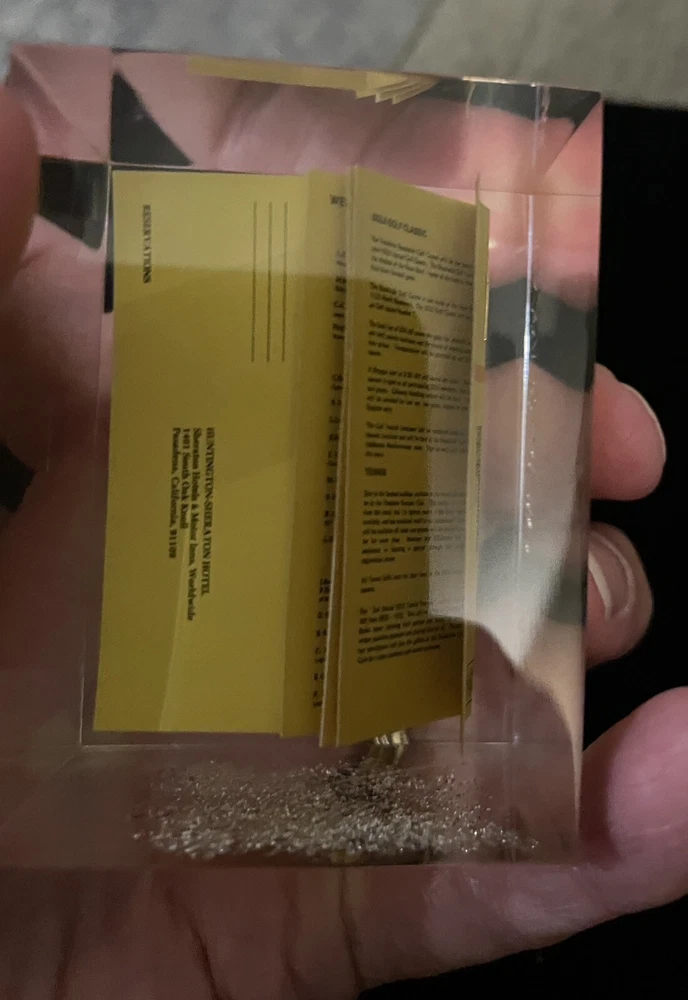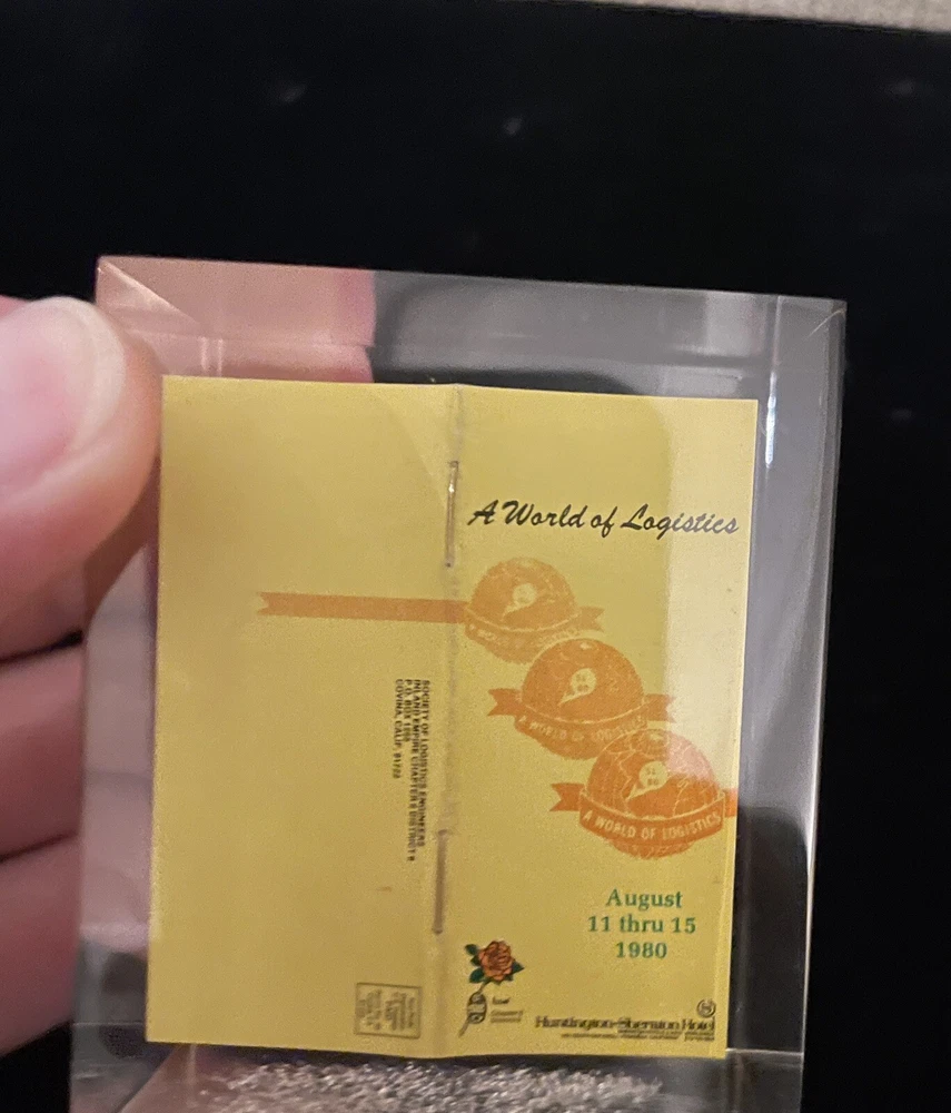 This unique vintage paperweight from 1980 features a miniature of "A World of Logistics" registration form, August 11 - 15, 1980, and is made of high-quality acrylic material. Measuring 2 1/2" x 2", it is a great addition to any collection of decorative collectibles. The paperweight is multicolored and has a unique design that would make it a standout piece in any collection. It is perfect for those interested in collecting odd paperweights. This item would make a great gift for collectors or anyone interested in fun vintage decor.