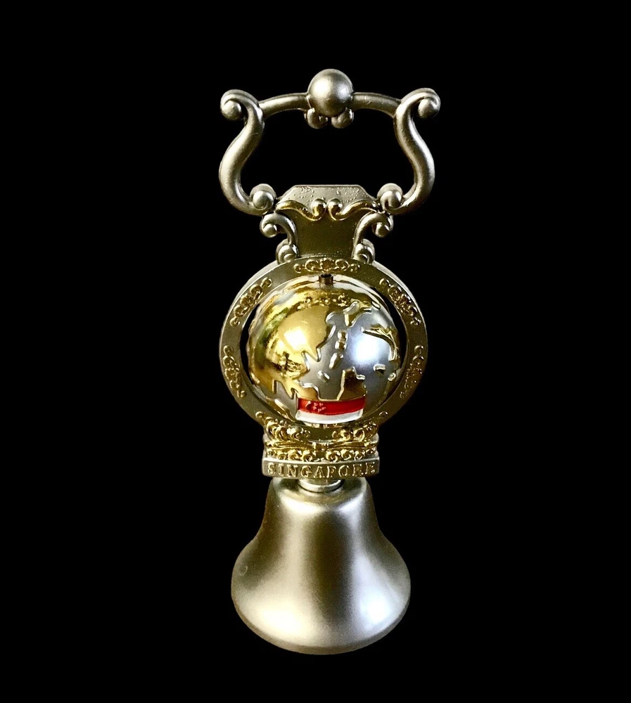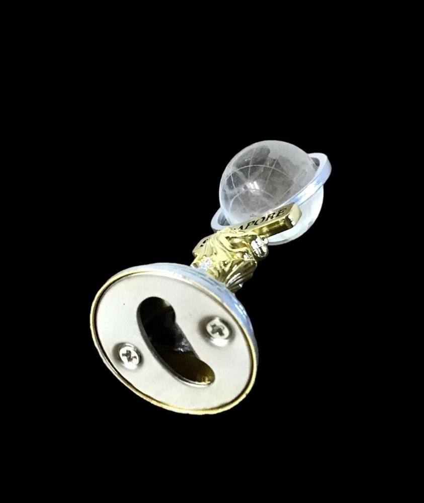 Featuring two bottle openers and 5 plastic cocktail forks in metal holder in near new to new condition, measure from 3 1/2” to 5” tall. The globes spin freely. Awesome pieces! Free shipping.