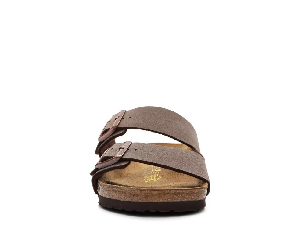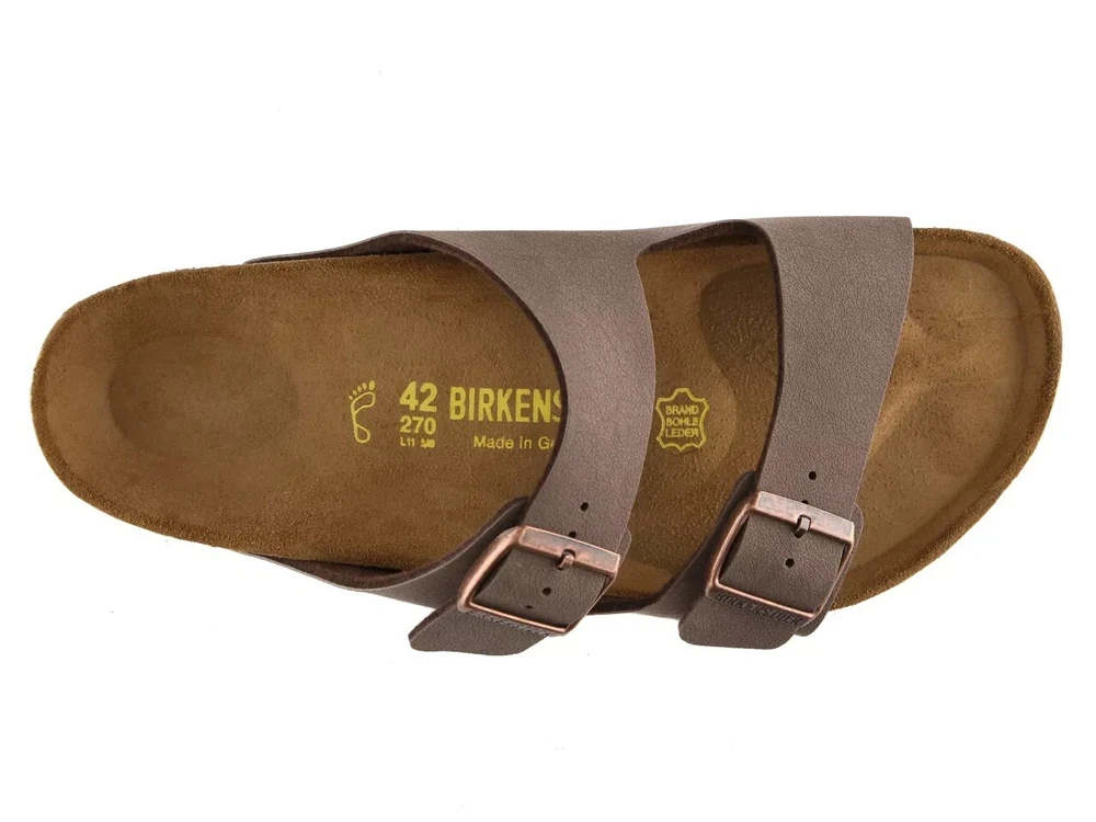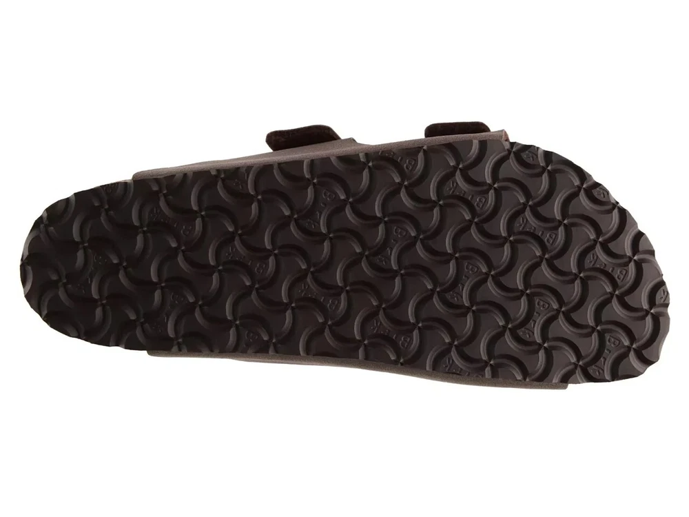 Product Description Birkenstock Arizona Slide Sandal - Men's Birkenstock has set the standard for comfortable footwear! Slip on your pair of Arizona slides and feel supported throughout the day thanks to a contoured footbed that's anatomically formed for supreme comfort. FEATURES Birko-Flor™ faux leather upper Slip-on with adjustable straps Round open toe Synthetic lining Contoured footbed Cork midsole EVA sole Made in Germany