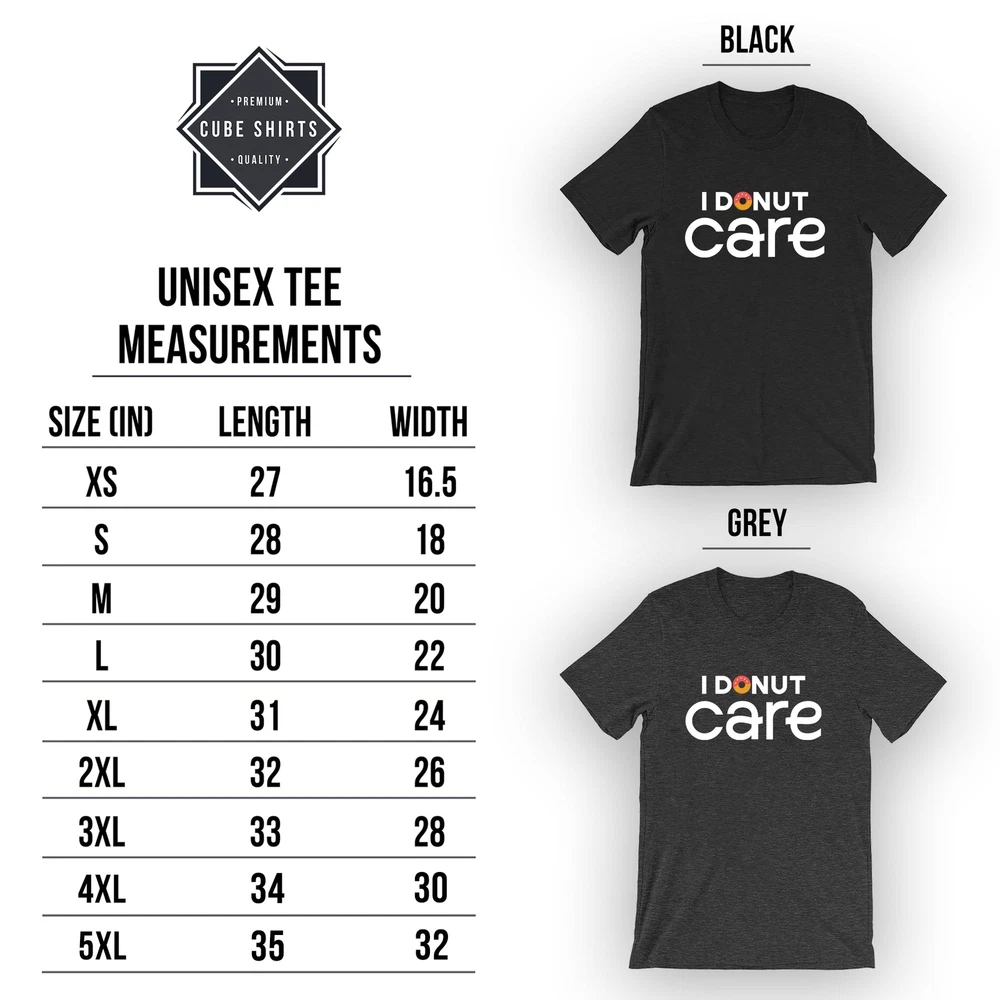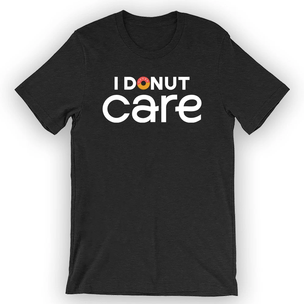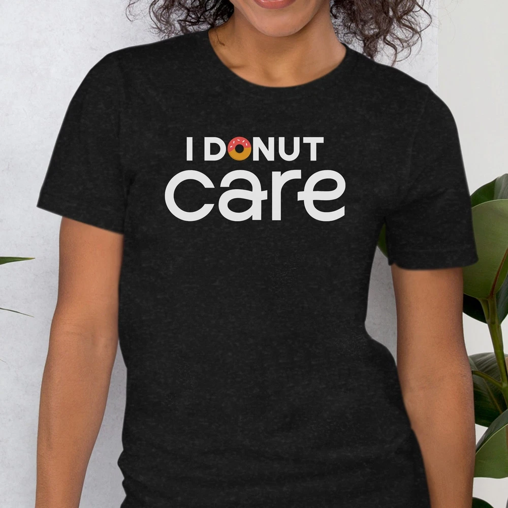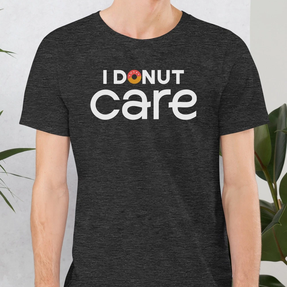 Indulge in sweet style with the I Donut Care Funny Donut T-Shirt, perfect for donut enthusiasts of all ages. This adorable shirt features a fun design, making it an ideal gift for doughnut lovers and a must-have for any donut-themed party or birthday celebration. Stand out in the crowd with this graphic tee that showcases your love for donuts in a humorous and fashionable way. This Kids Donut Tee is not just a shirt; it's a statement piece that lets you express your love for all things sweet and sugary. The playful donut quote top is a great addition to your wardrobe, whether you're heading to a donut birthday party or simply craving a fun and trendy look. Embrace your inner donut eater with this Doughnut Quote shirt that is sure to bring smiles and laughter wherever you go. UNIQUE DESIGNS: We are focused on creating high-quality designs that help our customers look and feel their best. Make your friends laugh in combination with one of our many witty and fun tees. You will not regret wearing this shirt around! FIND YOUR FIT: Refer to the size chart located below before placing an order to ensure you get your desired fit. Please reach out if you have any questions. PREMIUM SHIRTS: What’s a stunning graphic without a great shirt? Our shirts utilize a soft cotton blend that perfectly complements the graphic and feels great to wear. QUALITY GRAPHIC: We utilize direct-to-garment printing in combination with eco-friendly inks. This allows for precise and vibrant designs to be put onto the shirts. GREAT FOR: Gifts, parties, concerts, adventures, gym sessions, relaxing, sleeping, and general wear.
