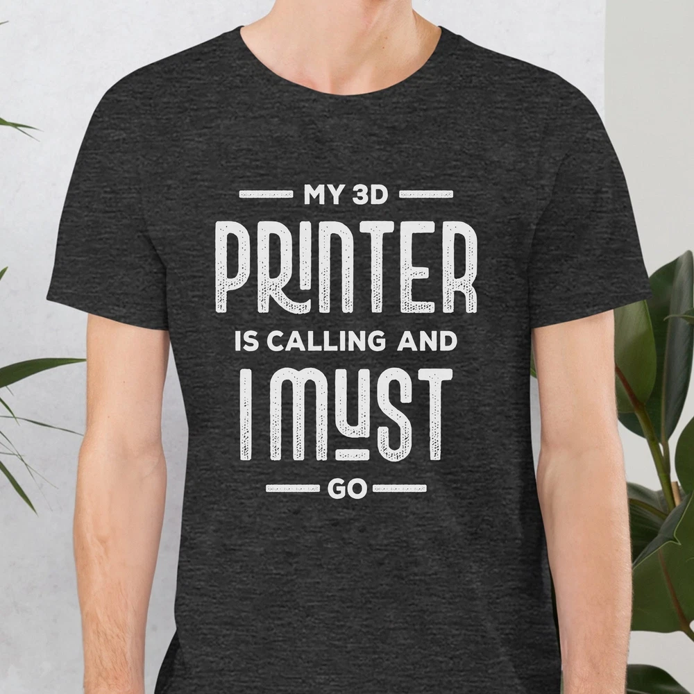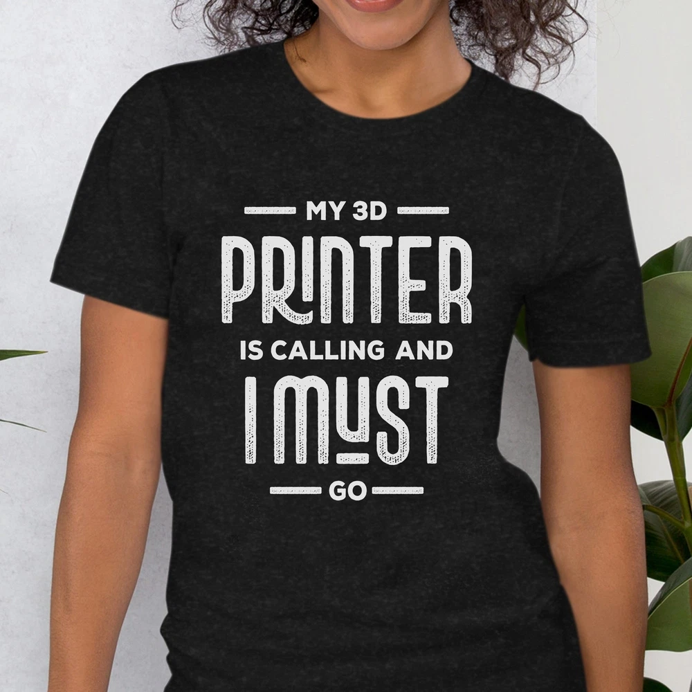 Elevate your style with our 3D Printing Tee, a must-have for every 3D print lover out there. This funny and cute t-shirt features the clever saying, My 3D Printer Is Calling and I Must Go, making it the perfect addition to any 3D printing enthusiast's wardrobe. Show off your passion for 3D printing with this unique shirt that combines humor and technology in one awesome design. Whether you're a seasoned 3D printing pro or just starting out, this 3D Printing Tee is the ideal gift for yourself or the 3D print enthusiast in your life. With its comfortable fit and eye-catching design, this shirt is sure to become a favorite go-to piece in your closet. Embrace the world of 3D printing with style and humor by rocking this 3D Printing Tee everywhere you go. UNIQUE DESIGNS: We are focused on creating high-quality designs that help our customers look and feel their best. Make your friends laugh in combination with one of our many witty and fun tees. You will not regret wearing this shirt around! FIND YOUR FIT: Refer to the size chart located below before placing an order to ensure you get your desired fit. Please reach out if you have any questions. PREMIUM SHIRTS: What’s a stunning graphic without a great shirt? Our shirts utilize a soft cotton blend that perfectly complements the graphic and feels great to wear. QUALITY GRAPHIC: We utilize direct-to-garment printing in combination with eco-friendly inks. This allows for precise and vibrant designs to be put onto the shirts. GREAT FOR: Gifts, parties, concerts, adventures, gym sessions, relaxing, sleeping, and general wear.
