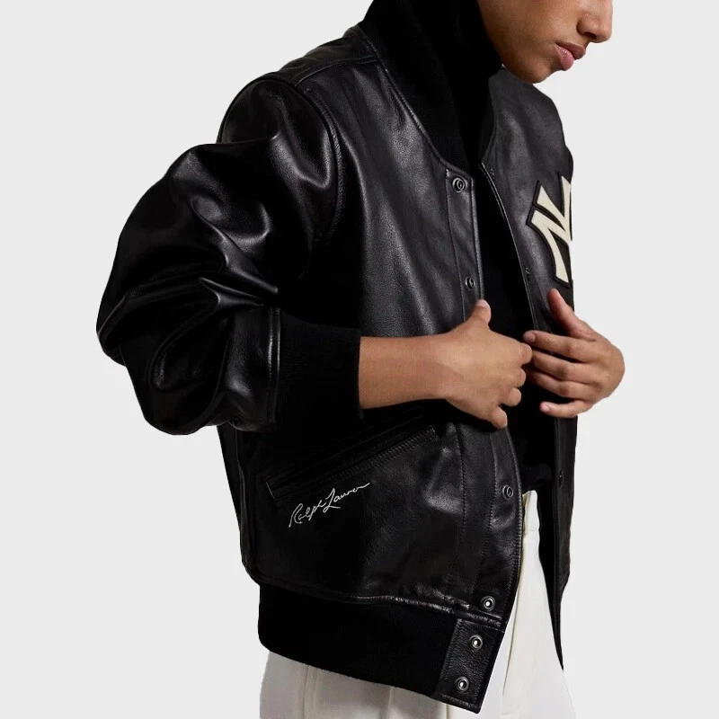 Unisex Premium Black Polo Ralph Lauren Yankees Genuine Leather Bomber Jacket Description: Elevate your style with the Unisex Premium Black Polo Ralph Lauren Yankees Genuine Leather Bomber Jacket. Crafted from high-quality genuine leather, this sleek bomber features a classic black design with signature Polo Ralph Lauren detailing and a bold Yankees logo for a sports-inspired look. Designed for both comfort and durability, it’s perfect for casual wear or a statement piece for any occasion. Specifications: Material : 100% Genuine Leather Color : Black Style : Bomber Jacket Fit : Unisex Brand : Polo Ralph Lauren Logo : Embroidered Yankees logo on chest Collar : Ribbed, stand-up collar Cuffs : Ribbed cuffs and hem Pockets : Side pockets with zippers Closure : Front Button closure Care : Dry clean only Why Choose AHMII Leathers? AHMII Leathers offers unmatched craftsmanship, using premium materials for luxury leather goods. Their attention to detail, commitment to quality, and timeless designs ensure each piece is durable, stylish, and built to last. Whether for fashion or function, AHMII Leathers delivers sophisticated, high-end leather products you can rely on.