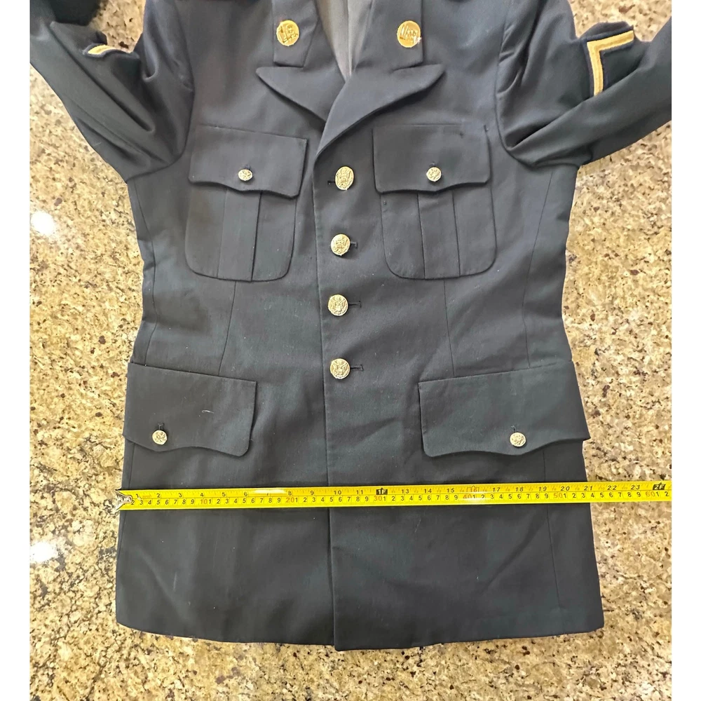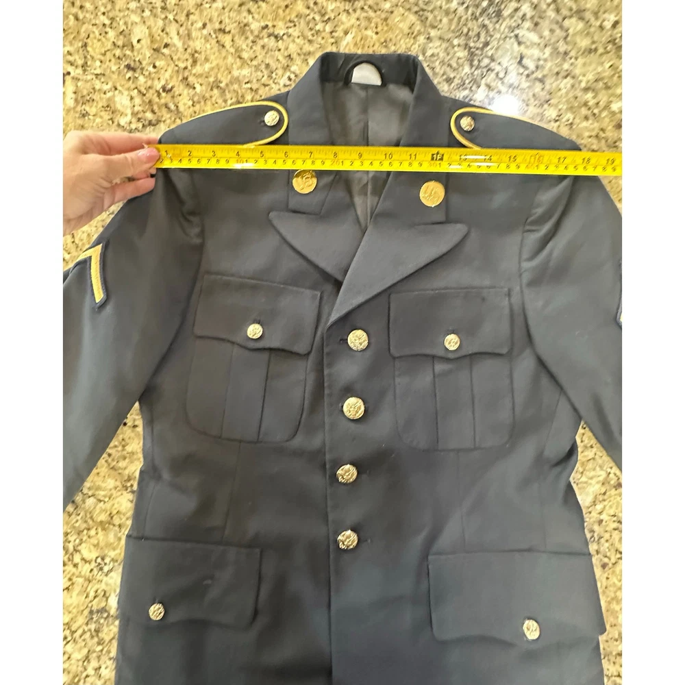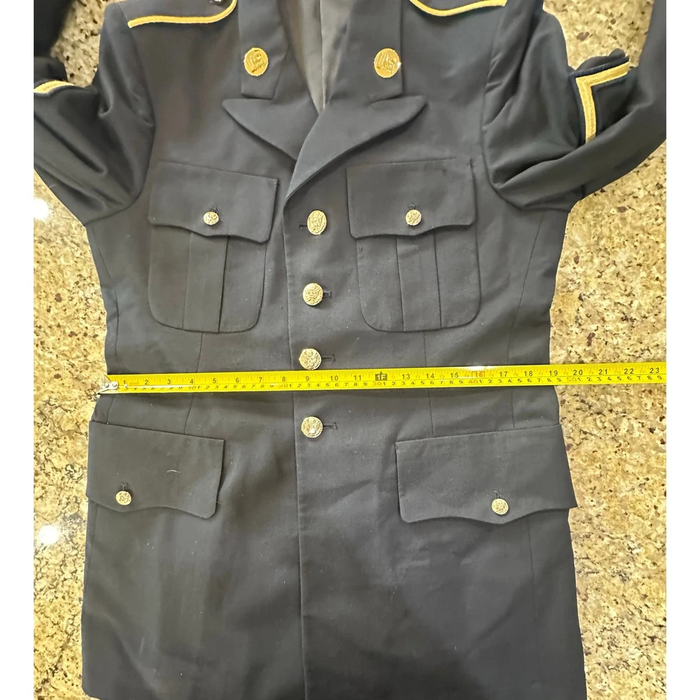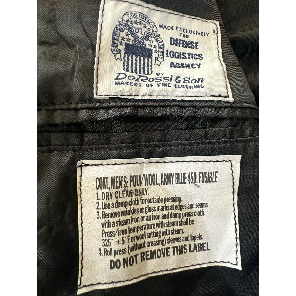 United States Army Service Uniform Dress Blue 450 ASU Jacket Coat Poly Wool 37RC MINT CONDITION!!! Made for Defense Logistics Agency by De Rossi & Son Make an offer; I accept all reasonable offers, usually within the hour! Measurements flat: Armpit to armpit is 20 inches Shoulder to shoulder is 18 inches Waist is 19 inches Hips are 21 inches Sleeve length is 24 inches Total length top of shoulder to bottom of jacket is 30 inches Smoke free home! Ships fast the same or next day! Military, embellished, USA