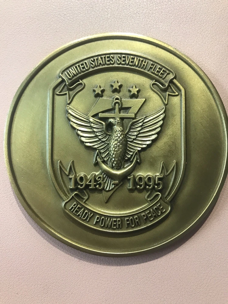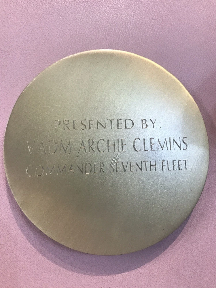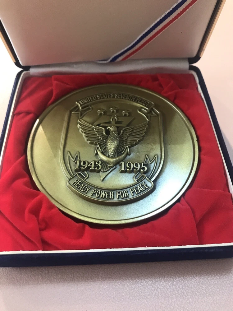 Paperweight United States Seventh Fleet Navy Blue Velvet Box 1943-1995. This was given to me personally by the Vice Admiral in 1995 aboard the Flagship, Blue Ridge. It comes in a Blue Velvet box for keeping. It has never been used as a paperweight, just as a memento of my time in Hong Kong. It will be sent priority mail, it is heavy. Original Owner. Please see all photos. Shipping to USA only. Sold “as is”. TERMS OF SALE.Payment is expected at the time of purchase. Item will be mailed within 24 hours from time of received cleared payment. Everything will be securely packaged and sent from a smoke free home. Thank you for checking out our treasures. We strive for a five star transaction.