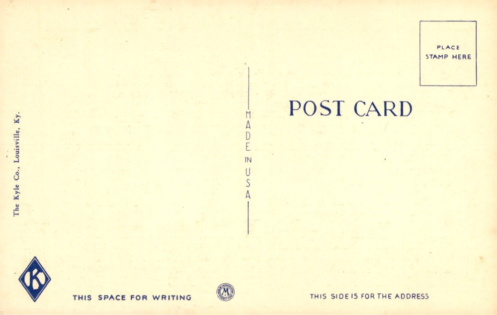 The postcard features the United States Post Office, Court House, and Custom House in Louisville, Kentucky. It includes a space for writing and address.