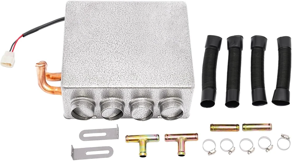 Universal 12 VOLT Underdash Heater Heat w/ Speed Switch for Car or Truck 4 port Item Description [Powerful]-- This heater has a longer service life and can provide more heat output than battery-powered heaters. [High Quality]-- Made of high-quality materials, the high-efficiency copper tube heating core helps to heat the air passing through the core in seconds. [Installation]-- Easy to install, equipped with mounting bracket and speed control switch, supported under the instrument panel. [Fits]-- Applicable models: trucks, minivans, excavators, harvesters and so on. [Size]-- 23 x 21 x 10cm/9.3" x 8.5" x 3.9", Outer diameter of ventilation holes: large hole, 45 mm, small hole, 40 mm Features 1.Energy-efficient Heater, Can Provides More Heat Output than Battery-powered Heater in Low Consumption 2.Make Full Use of Hot Coolant, Functions in the Same Way As Engine Cooling System, Environmentally Friendly 3.High Efficient Copper Pipe Heating Core Helps to Warm up the Air Through the Core in Seconds 4.Powerful Blower Motor and 4 Holes Air Outlets Provides Strong Warm Air Flow to Passenger Compartment 5.Comes with Mounting Brackets and Speed Control Switch, Support Under Dash Installation Specifications Condition:100% Brand New Warranty: 90 Day Free Return:30 Day Color: Grey Optional Voltage: 12v Power Supply: 8a Material: Copper, Iron Weight: About 3kg Size: 23 X 21 X 10cm/9.3" X 8.5" X 3.9" Fitting Required - 5/8'' (16mm) Inner Diameter Water Hose Applicable Models: Trucks, Minivans, Excavators, Harvesters and so on. Instructions 1、Make Sure the Direction of Flow Through the Cooling System 2、Connect the Hot Coolant Hoses to the Inlet and Outlet of Heater 3、Wire Heater and Switch into Your Vehicle’s Electrical System The Red Wire of Switch Is Connected with Positive Pole of Power Supply and Heater The Blue Wire of Switch Is Connected with Negative Pole of Heater The Black Wire Is Connected with Negative Pole of Power Supply Package Included 1pc Heater 2pcs Tee 2pcs Mounting Brackets 1pc Switch 2pcs Straight Fittings 7pcs 16-25mm Hose Clamps As pictures show FAQ: I purchased by mistake, how do I cancel the order? Please contact us ASAP. If the item has not been shipped out we can cancel the order for you. If the item was shipped out you can refuse the package and wait for the item to return to us. I received your item but it does not fit or is defective Please contact us so we can assist you on the matter. Buy with confidence Our quality is based on meeting the requirements of the manufacturer and improvement them in design problems manufacture. NOTE: (1)It would be highly appreciated if you might contact us first once you have any problems concerning the items. And you can expect all the issues would be resolved ASAP! (2)Please let us know before you send us the neutral/negative feedback that wont help to finish the issues. And I will definitely try my best to provide the best solutions which would meet our satisfactory! (3)According to the distance of the receipt address items would be sent from CA or NJ