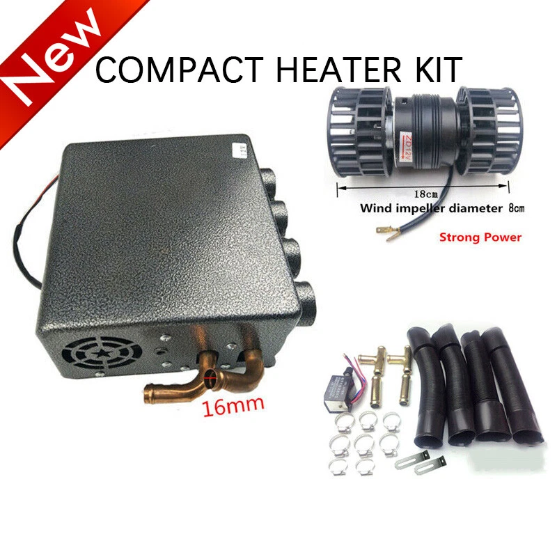 12V Universal Auto Car Underdash Compact Heater Kit 12x Copper Tube+Speed Switch Description: Specification: Color: Grey Optional Voltage: 12V Power supply: 12V / 8A Material: Copper, Iron Weight: about 3KG Size: 23 x 21 x 10cm/9.3" x 8.5" x 3.9" Fitting required - 5/8'' (16mm) inner diameter water hose Applicable models: trucks, minivans, excavators, harvesters, tricycles and so on. Features: Comes with mounting brackets and control switch. Very easy to install , only need to hook this heater up to water tank and supply power , then works. INSTRUCTIONS: The red line is connected with a power supply's positive pole and motor's positive pole. The blue one is connected with the motor's negative pole. The black line is connected with a power supply's negative pole. Notice: Please allow 1-2mm error due to manual measurement.Pls make sure you do not mind before you bid. The color may have different as the difference display,pls understand. Package Included: 1pcs x heater 4pcs x Black tubes 2pcs x Tee 2pcs x mounting brackets 1pcs x switch 2pcs x straight fittings 8pcs x 16-25cm hose clamps