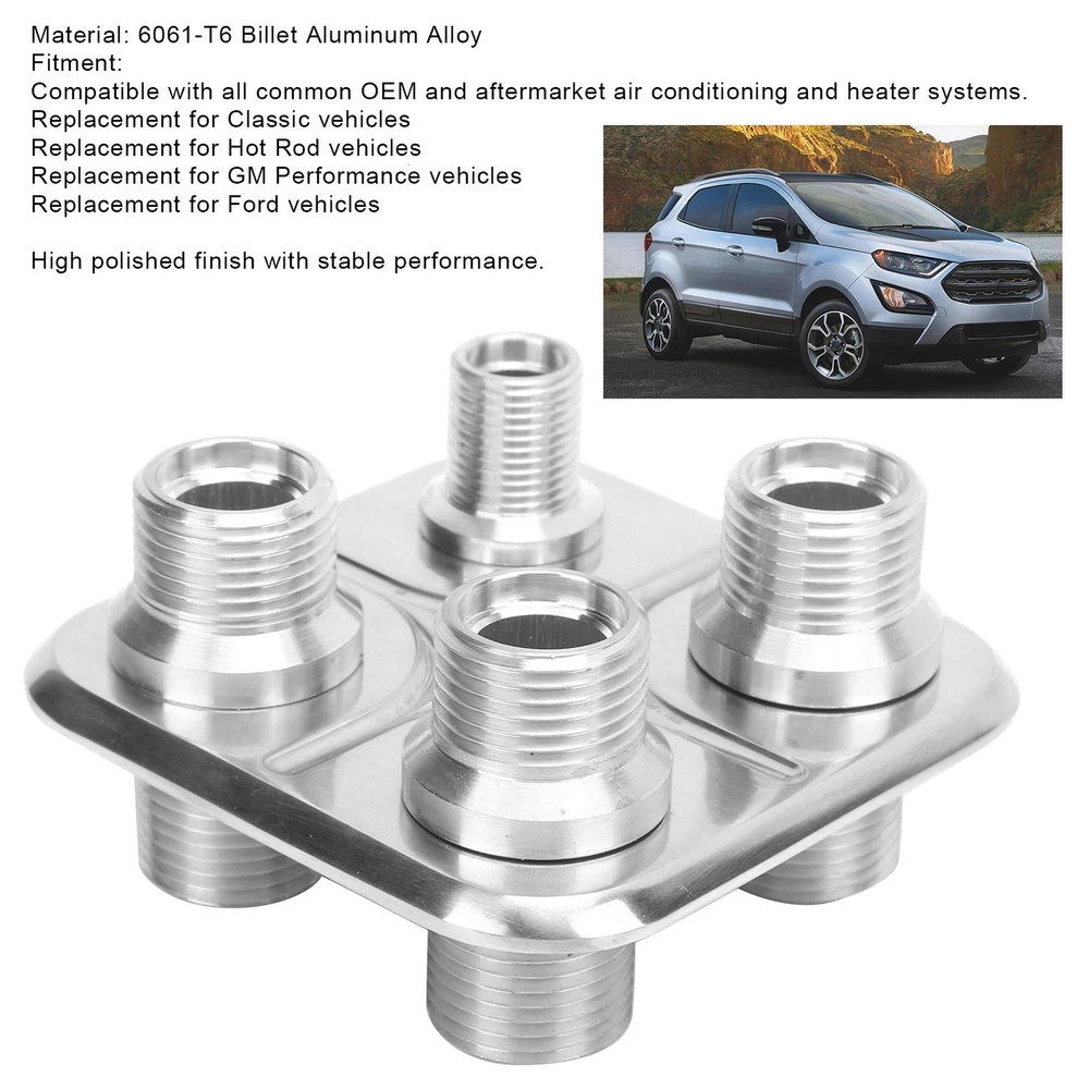 Item Type: A/C Bulkhead Material: 6061‑T6 Billet Aluminum Alloy Fitment: Compatible with all common OEM and aftermarket air conditioning and heater systems. Replacement for Hot Rod vehicles Replacement for GM Performance vehicles Replacement for Ford vehicles