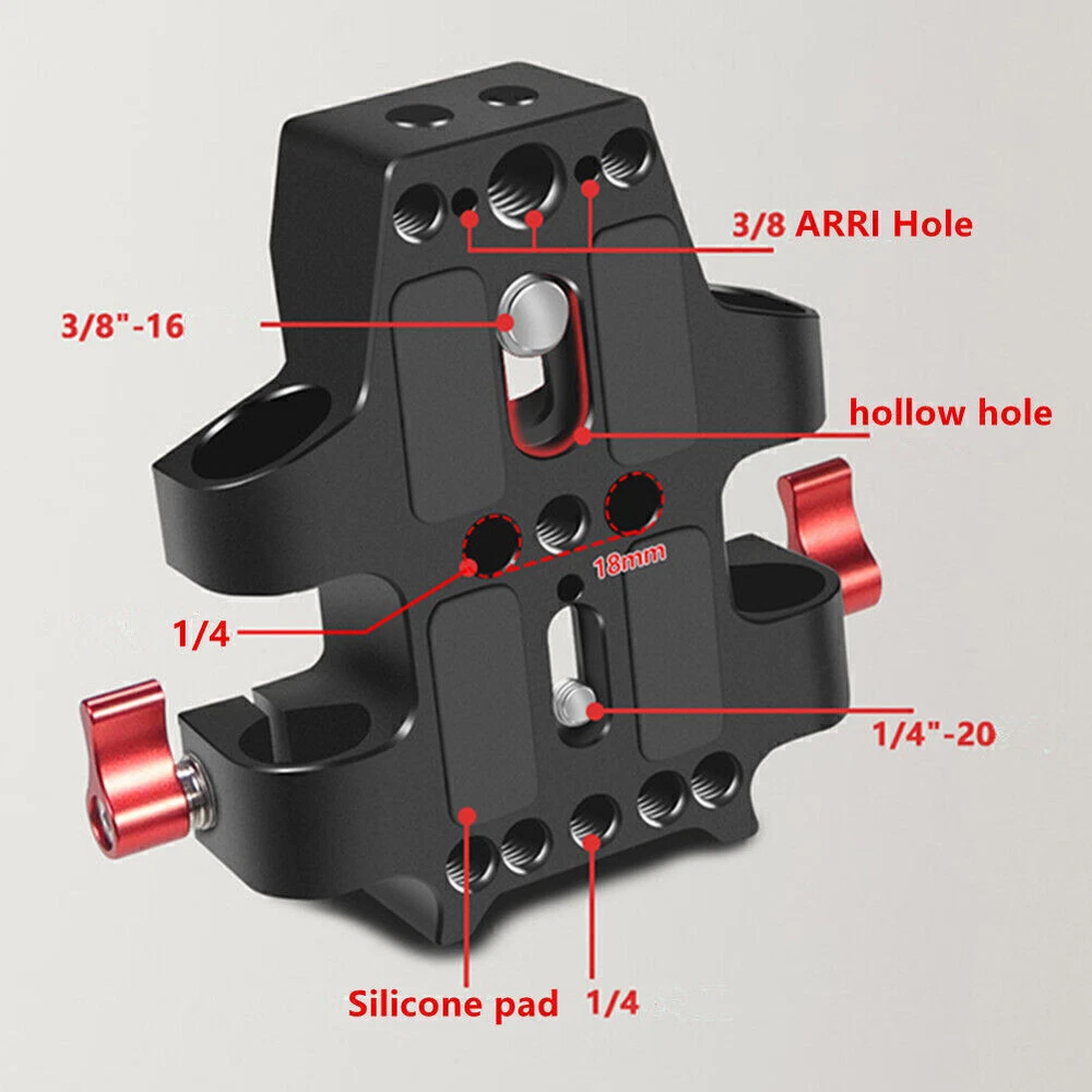 Product Description If you have any questions, please contact customer service first, do not open disputes easily, thank you! Features: The camera mount plate has anti-slip rubber pads to protect the camera from scratching and twisting. The tripod mount plate also built in 1/4" & 3/8" screw holes on the bottom to allowed be directly attached to a tripod or dolly or other devices, flexible of using. You can connect a device with 1/4" screw on it, such as magic arm, etc. Specifications: Material: Aluminum Alloy, CNC Machined Rails center-to-center distance: 60mm Rails dia: 15mm Camera Mount: 1/4" & 3/8" Tripod Mount: 1/4" & 3/8" Extending Accessories Mount: 1/4" Package includes: 1x Baseplate 4x Screw 2x Spanner (Note: The 15mm Rods are not included.) About Us We accept all payments authorized by eBay. powered by