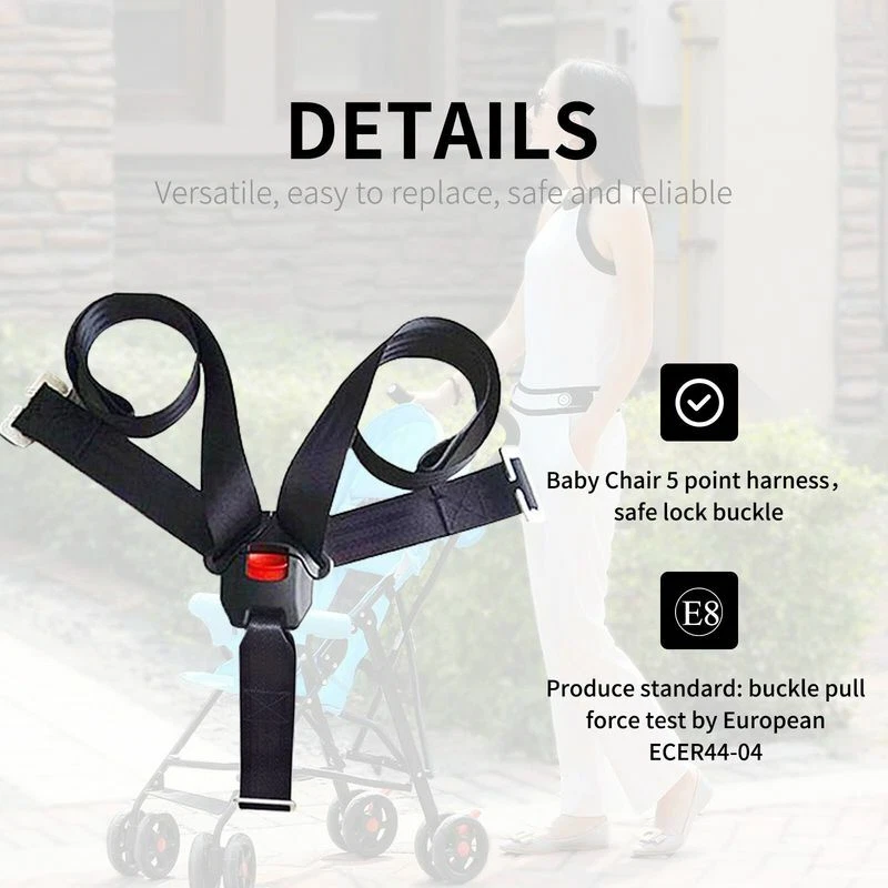 Product Information Name 5 Point Baby Seat Harness Material Durable Nylon Net Weight 1.1Lbs Color Black Application Baby Highchairs, baby stroller, pushchair, electric car and bicycle baby seat Buckle Belt Width 1.5inch (38mm) Shoulder Belt Length 45inch (114cm) Package include 1x Buckle Belt, 2x Shoulder Belts, 1x Button Adjustable straps, Accessories Bag R eplacement straps harness for most Baby Highchairs, baby stroller, pushchair, electric car and bicycle baby seat Shoulder belt length 33in, buckle belt length 5.1in, width 1.5in Baby chair replacement straps material: Durable Nylon Come with installation video. Easy to install. Produce standard: buckle pull force test by European ECER44-04 This item is not fit for all the car seat, please check with your original seat belt carefully before your purchase, thanks. Packing list: 1 Set * Car Baby Safety Seat Strap Belt Harness with Chest Child Clip Buckle Latch 2 PCS * Shoulder strap 1 PCS * Tightening belt + tee fastener 1 PCS * Slip fastener