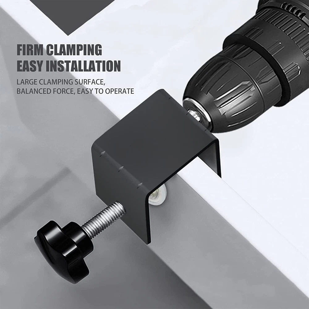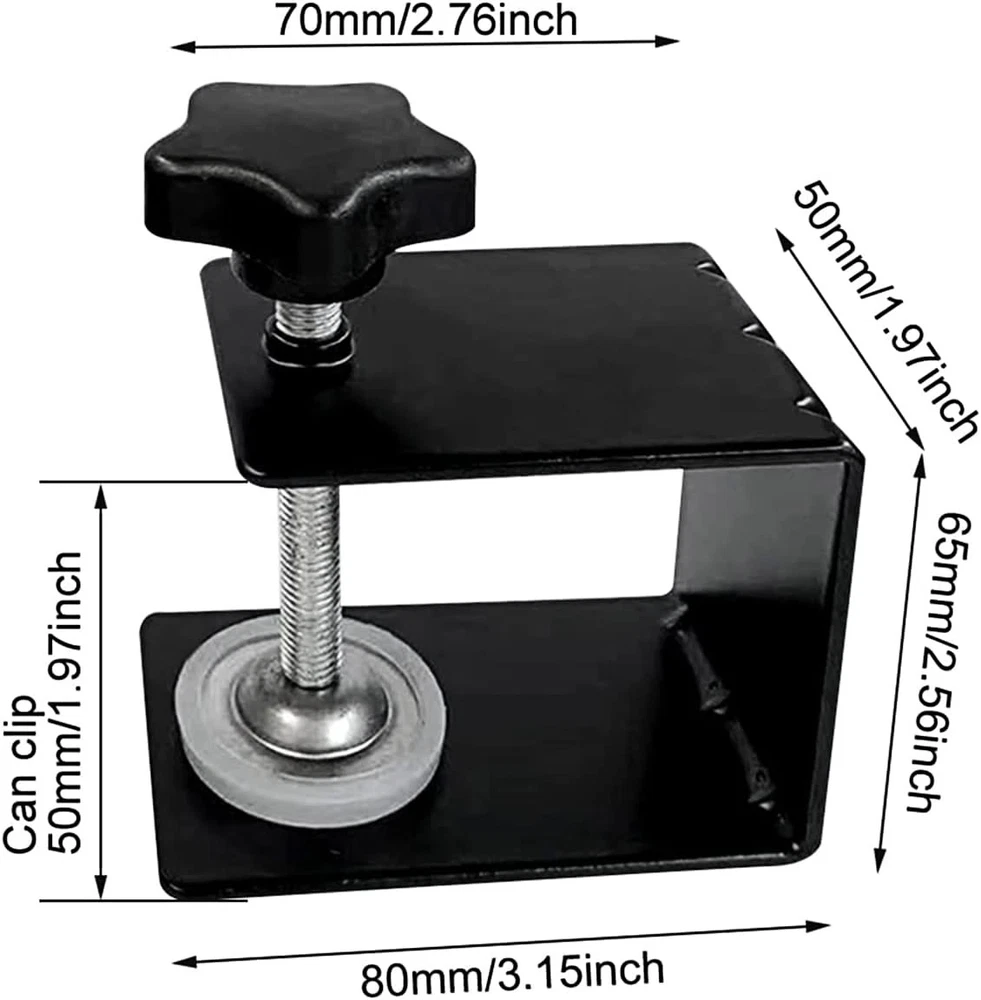 Specification: *Adjustable jaw. *Anti-slip design. *Material: -piece cold-pressed steel plate. *Size: 3.15*2.56*1.97inch. *Color: Black. Package Contents: 1/2/3Pcs C Installation Clamps. 【High quality material】Our C-clamp is made of aluminum alloy, durable, strong, light and easy to carry, with electrostatic spraying process. Smooth and beautiful appearance, no burr. 【Easy to adjust】Adjustment by screw knob, easy to operate, multiple bracket mounting holes, installation angle free adjustment. 【Anti-slip Design】The aluminum C-clamp uses anti-slip friction rubber pads, and the updated rubber pads on the clamp part can prevent damage to the cabinet surface during installation. 【Easy and fast cabinet installation】Easy tightening and alignment of cabinet door frame and flexible drilling guide for pre-drilling and installing screws will make the assembly smooth and easy. Professional cabinet clamps can complete the installation in minutes. 【Applicable to woodworking industry】It can be easily installed on desks, carts, benches, workbenches, posts, clamps on headrests, etc.