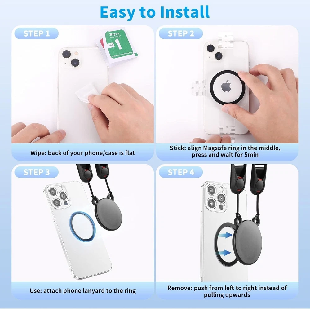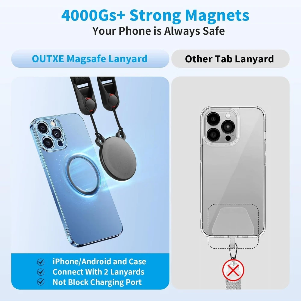 Universal Cell Phone Lanyard, Magnetic Neck/Crossbody/Cross Body Strap for Men/Women, Compatible with Magsafe iPhone/Android and Cellphone Case -Black Universal Phone Lanyard: Stick the ring on back of your phone/case to be compatible with magsafe, for Galaxy/Pixel/Android/iPhone 15 14 13 12 11 mini plus pro max 4000Gs+ Magnets: Strong enough to protect your cell phone from losing/falling when traveling/walking/taking photo Easier to Remove: Push from left to right and remove in 3 seconds when you don't want. Doesn't block charging port and interfere with wireless charging Neck+Crossbody: Sturdy and skin-friendly nylon, adjustable length 15.7-28.5in suitable for 95% men/women Must-have Gift: Hands free and keep the cellphone with your friend/father/mother if they have a bad memory