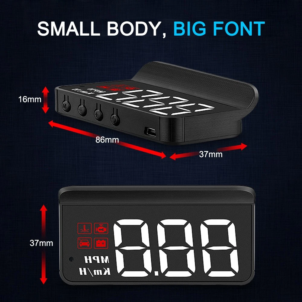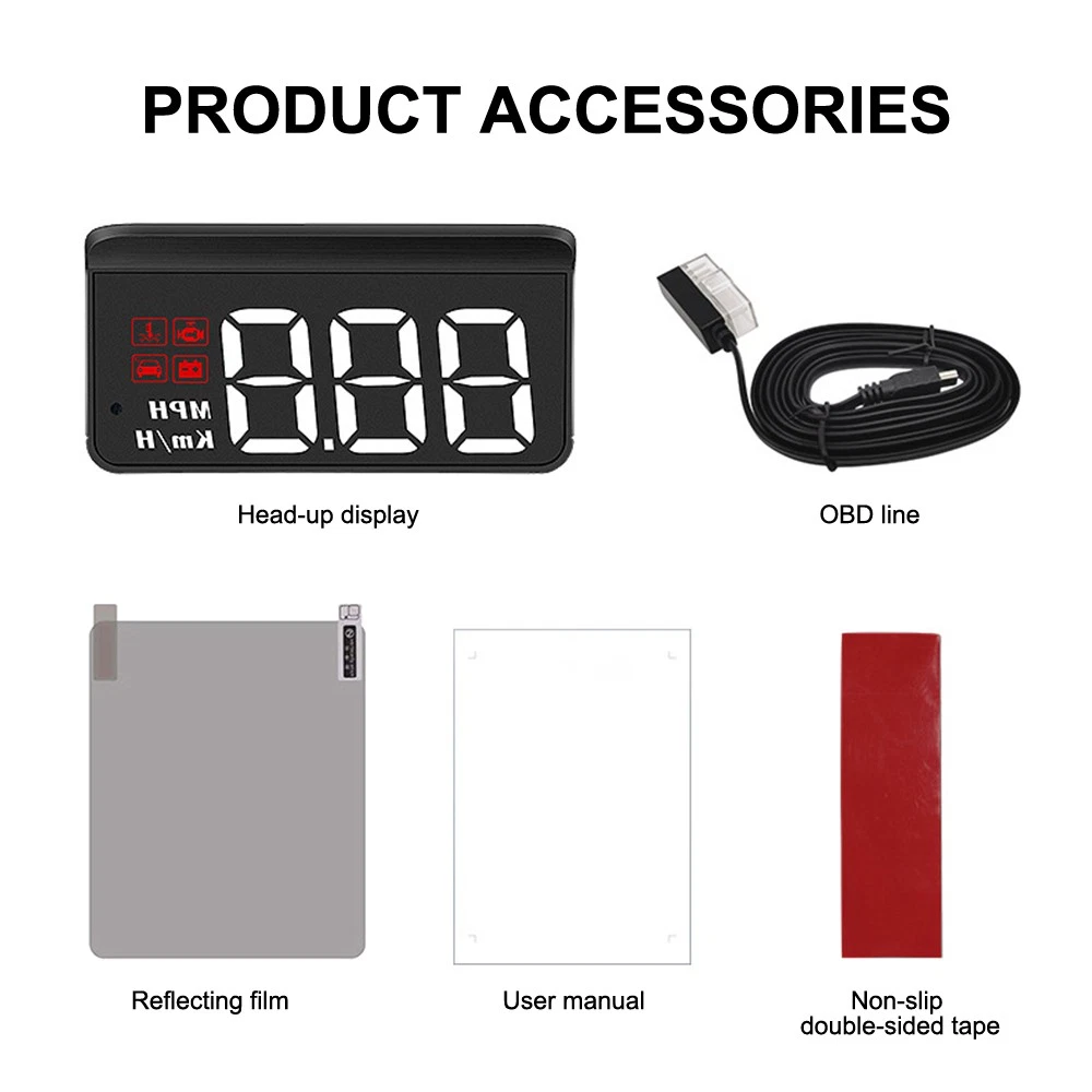 Features: 1. [High Quality Material] It is made of high quality ABS plastic, which is heat-resistant, hard, high elasticity and toughness, which improves the electrical performance, abrasion resistance, and has good waterproof performance. Good material can effectively increase the service life of the product. We are confident in the quality of our products. 2. [Easy to Install] Snap-on plug, solid and stable connection, even on rugged roads, it will not disconnect or power off. Plug and play, install and start working. Installation can be done in a very short time and requires almost no mechanical knowledge. 3. [Multi-function] It can display speed, water temperature, voltage, one-way driving mileage. With alarm function, overspeed alarm, water temperature alarm, voltage alarm, fatigue driving reminder, malfunction alarm.HUD has adaptive light sensor function, clear backlight during the day, soft and free at night. 4. [Application] New high quality car flat screen display with various functions for cars with OBD2 interface and protocol. HD display effect, clear and no ghosting, main unit + reflective film, backlight is also clear. 5. [Non-destructive installation] Non-destructive installation, plug and play, simple operation Specifications: Function: speed, water temperature, voltage, single driving mileage Product size: 8.6*3.7*1.6cm Material: ABS List: Host *1 Power cord*1 Reflective film *1 Anti-slip sticker *1 Instruction manual *1 On Aug 24, 2025 at 19:20:50 PDT, seller added the following information:
