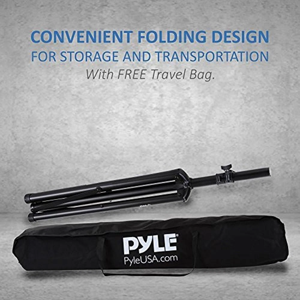 Store New Arrivals Add to Favorite View Feedback Contact Universal Dual PA DJ Tripod 2 Speaker Stand Kit with Adjustable Height & Storage Bag Constructed with Heavy Duty Durable Steel & Lightweight for Easy Mobility Safety PIN Screw Locks Pstk107,Black Description Item model number PSTK107 Color Black Is Discontinued By Manufacturer No Product Dimensions 8.47 x 5.12 x 41.15 inches Material Alloy Steel Country of Origin China Item Weight 14.42 Pounds Finish Type Painted or Powder Coated TRIPOD LEG DESIGN: Center brace connects tripod legs for increased stability. The tripod speaker stands collapse easily to fit inside the bag for easy transportation. It can hold speakers of up to 132 lbs firmly and steadily for better sound effect. QUICK AND EASY HEIGHT ADJUSTMENT: It features a telescoping center column that is adjustable ranging from 40’’ - 71’’ inch high and secure it with the sturdy pin and screw locks. The rugged and durable metal construction tubing provides stability. NON SLIP FEET: Pyle features universal floor standing speaker stand as well as non-slip rubber feet along with an equal weight distribution makes the base extremely stable and safe. They are perfect for your practice space on stage or in the bar. 35mm COMPATIBLE INSERT: Pyle comes with a pair of adjustable speaker stand that weighs 6.9 lbs each and works with all speakers with 35mm compatible insert. An ideal heavy duty audio speaker stand for loud music, pa speakers, studio monitor and more. OPENED AND CLOSED STAND DIMENSION: It has 58.0” x 58.0” x 76.0” opened single speaker stand dimensions while 5.7” x 5.7” x 42.0” when closed. The Pyle Adjustable Height PA Speaker Stand provides you with two heavy duty speaker stands and a convenient carrying bag for easy transportation If you want to enjoy stereo and surround sound to its fullest it's very important to install your speakers at the proper height This speaker stand features solidity and stability to endure speaker up to 132 lbs And it can hold speakers of up to 132 lbs firmly and steadily for better sound effect It has 5 7” x 5 7” x 42 0” closed single speaker stand dimension and 58 0” x 58 0” x 76 0” opened single speaker stand dimensions The sturdy and expandable long tripod legs ensure that your speakers will be stable in any occasions They are perfect for your practice space event venue or home recording studio Also it comes with a travel bag so you can take the pair of stands to anywhere conveniently and smoothly Features Universal Floor-Standing Speaker Stand Mounts Works with All Speakers with 35mm Compatible Insert (Loudspeakers PA Speakers Stage/Studio Monitors etc Quick and Easy Telescoping Height Adjustment 40’’ - 71’’ -Inches Locking Safety Pin for Secure Placement Rugged and Durable Metal Construction Reinforced Engineered Tubing Convenient Folding Design for Storage & Transport Knob-Style Tension Locking Mechanism Perfect for On-Stage or In-Studio Use What’s in the Box (2) Adjustable Speaker Stands Storage/Travel Bag Technical Specs Tubing Thickness 35mm (1 375'') Standard Maximum Speaker Weight Load Capacity Up to 132 lbs Opened Single Speaker Stand Dimensions (L x W x H) 58 0’’ x 58 0’’ x 76 0’’ Closed Single Speaker Stand Dimensions (L x W x H) 5 7’ x 5 7’’ x 42 0’’ Single Speaker Stand Weight 6 9lbs -Each Sold as 1 Weight 16 3 lbs —— SATISFACTION —— Your satisfaction is our #1 priority If this item fails to meet your expectations we will accept it back a full within the first 30 days We also stand behind this product with a limited 1-Year manufacturer's If the item should show any defect within the first year we will help exchange it for a new one ABOUT US We offer the best prices around on high quality products. Our E-store includes media such as books, movies, music and games while offering electronics, toys, sporting apparel, clothing, tools, general home, garden items and more. SHIPPING We are always working hard to ensure your package arrives as soon as possible. Please understand that some factors like weather, high postal traffic, and the performance of shipping companies are outside of our control. We offer free shipping to the lower 48 states and ship within 2 business days of payment, usually sooner. We do not accept P.O. Boxes. Please provide a physical address. For shipping outside of the continental USA, we only use eBay's Global Shipping Program.The item is shipped to KY and then sent to the rest of the world. International customers are responsible for all duties and taxes. Continue to check out in order to calculate costs for shipping the item to your country. Messages regarding eBay's Global Shipping Program MUST be directed at eBay EXCLUSIVELY. RETURNS We offer a 30-Day Return Policy on items which you are not completely satisfied with. You have the option for a full-refund or an exchange of the item. No returns are available on items shipped outside of the USA. PAYMENT We accept PayPal. CONTACT US This page content is yet to come Please ad us to your favorite seller and visit again later Thank You CUSTOMER SATISFACTION We try our very best to make sure every customer is completely satisfied. If there's a problem, message us! We're happy to help. WE ACCEPT Copyright © 2021 AutoDS. | All Rights Reserved