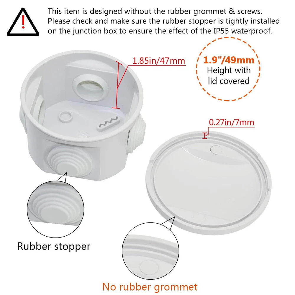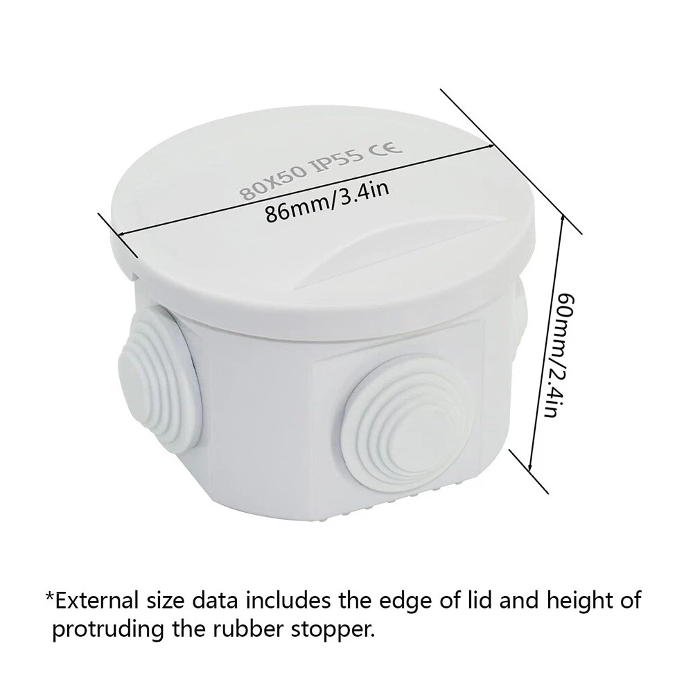 Features: [ Sturdy Construction ] Electrical Junction box is made of high-quality ABS plastic material, which offers excellent impact resistance and electrical insulation. Rest assured that your equipment will be well-protected in harsh environments. [ Safe and Certificated ] With CE RoHS compliant and waterproof rated, the electrical box is free of hazardous substances. The plastic box is predrilled which is easy to install and modify for your project. [ Indoor and Outdoor Use ] With the feature of water resistance and dustproof,it can effectively block splashing water, rain, dust, snow, oil, UV and more. Whether you need to use it indoors or outdoors, this surface mounted project box is easy to operate. [ Extensive Application ] Our junction box is used in a variety of applications: residential homes wiring and connecting electrical devices, such as light fixtures, switches, and outlets; protect and connect electrical equipment for machines, motors etc. Size: 3.15"x1.96" Package Included: 1x Waterproof Electrical Junction Box