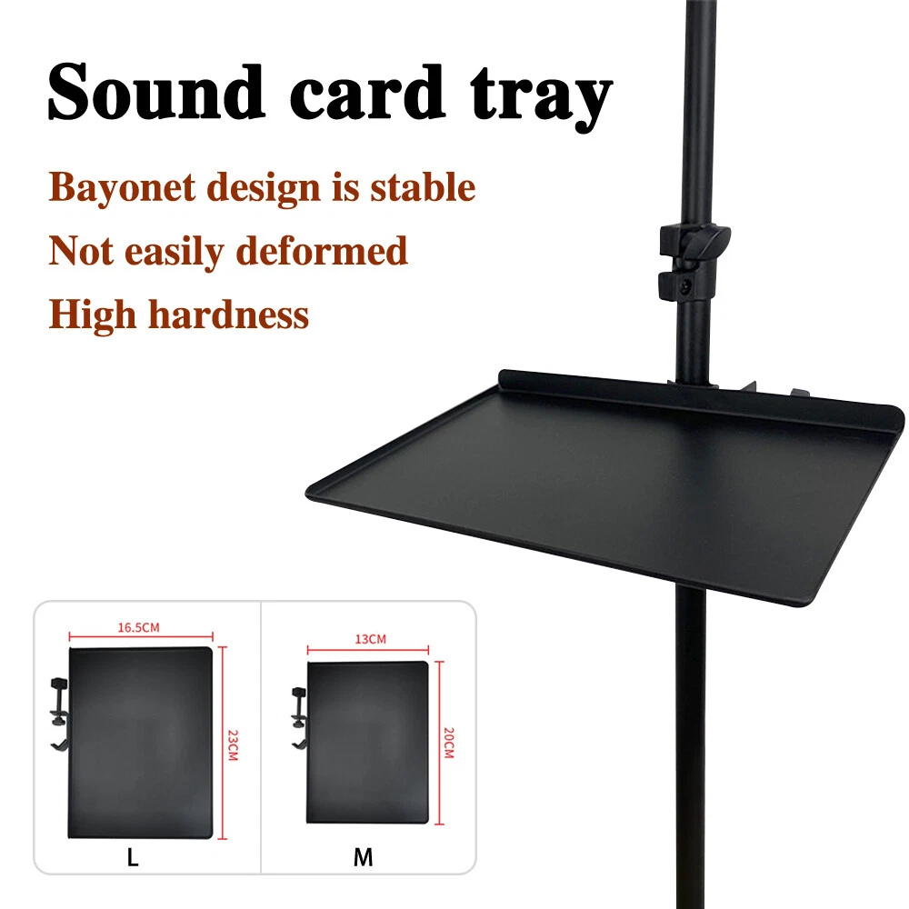 Categories Universal Mic/Microphone Stand Tray Adjustable Clamp-On Rack Tray Holder Large Description Features: 1. [Flexible and Variable] Easy to disassemble, can be lifted or lowered freely, and can be adjusted up and down to meet the desired height 2. [Metal Craft] The overall design is made of metal, which is lightweight and hard. The surface is treated with spray painting technology, and the texture is good 3. [Two sizes] M/L has different sizes to choose from (with a difference of about 1cm in size) M: 13cm * 20cm L: 16.5cm * 23cm 4. [Knob tightness] By tightening the knob nut, it can adapt to various different brackets 5. [Sponge anti slip] The buckle is attached with sponge, which can effectively prevent slipping and scratching of the bracket Specifications: Material: Aluminum alloy Size: M: 13cm * 20cm L: 16.5cm * 23cm Packaging list: 1 * Sound card tray Universal Mic/Microphone Stand Tray Adjustable Clamp-On Rack Tray Holder Large Description Features: 1. [Flexible and Variable] Easy to disassemble, can be lifted or lowered freely, and can be adjusted up and down to meet the desired height 2. [Metal Craft] The overall design is made of metal, which is lightweight and hard. The surface is treated with spray painting technology, and the texture is good 3. [Two sizes] M/L has different sizes to choose from (with a difference of about 1cm in size) M: 13cm * 20cm L: 16.5cm * 23cm 4. [Knob tightness] By tightening the knob nut, it can adapt to various different brackets 5. [Sponge anti slip] The buckle is attached with sponge, which can effectively prevent slipping and scratching of the bracket Specifications: Material: Aluminum alloy Size: M: 13cm * 20cm L: 16.5cm * 23cm Packaging list: 1 * Sound card tray On Dec 8, 2023 at 02:56:08 PST, seller added the following information: