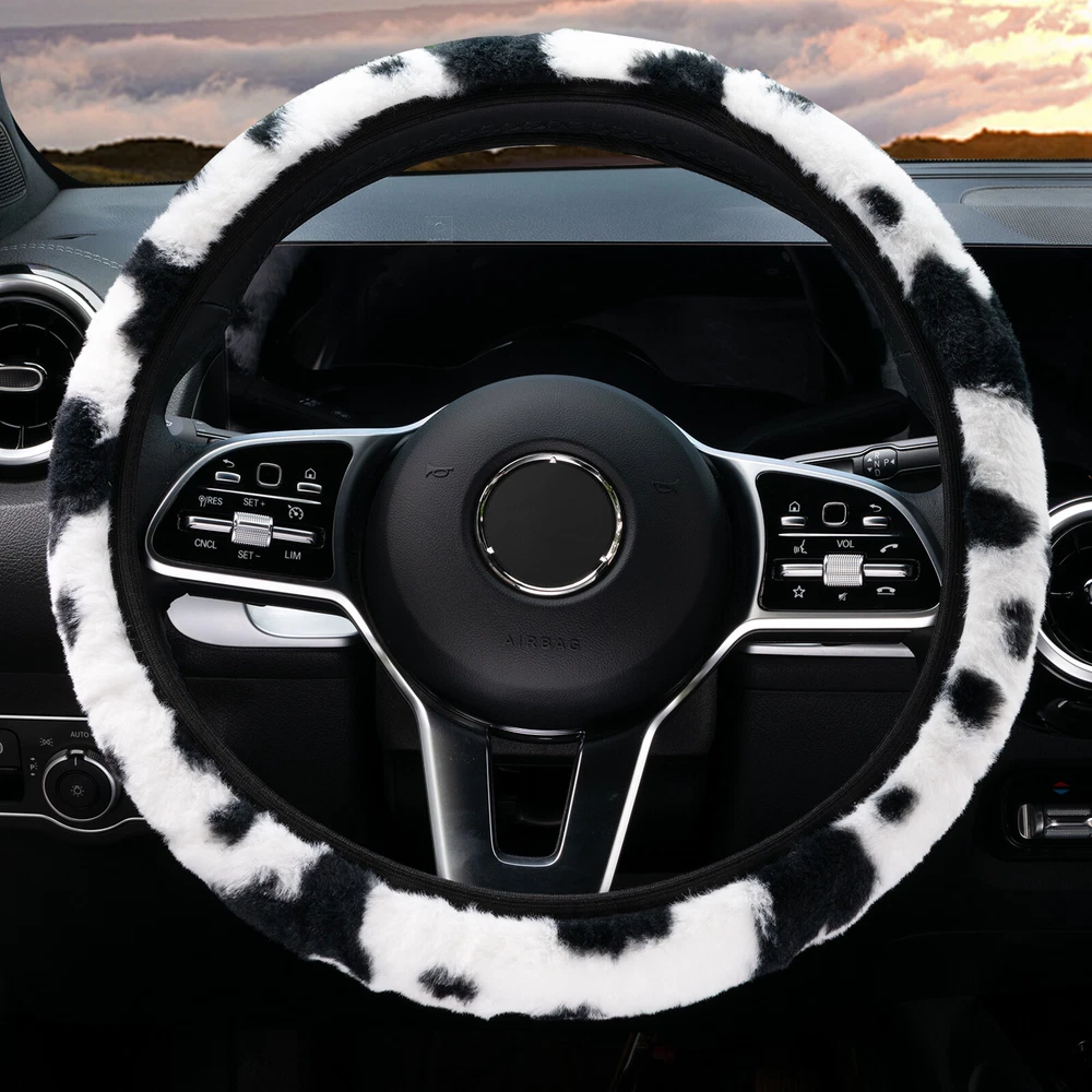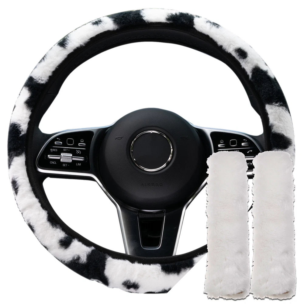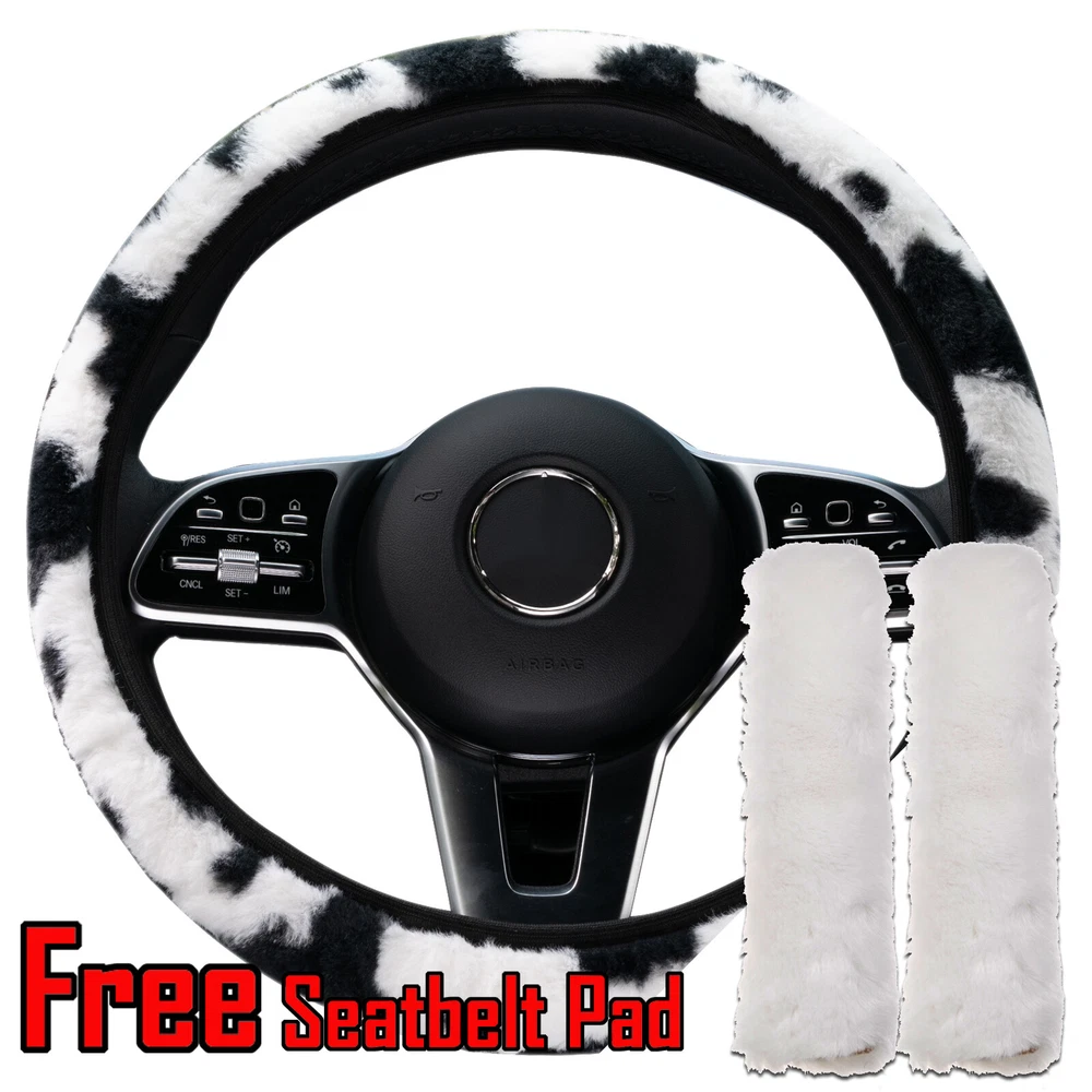 Universal Plush Cow Print Fur Steering Wheel Cover Car Protector Seat Belt Pads Type: Car Steering Wheel Cover + White Seatbelt Pads universal suitable for 36-39cm steering wheel in diameter Material: Cotton+Polyster Color: Milk Cow Print Pattern (as picture d) Package Included: 1x Car Steering Wheel Cover 2x Seatbelt Pads Features: --Better fit the original car's steering wheel. --Comfortable, soft, non-slip and Wear-resistant --Easy to install. No need to take off steering wheel or remove original leather; just wrap it over the steering wheel directly. --Warm for your hands in cold winter Note: Due to the light and screen difference, the item's color may be slightly different from the pictures. Please allow slight manual measurement deviation for the data. Before purchase, please carefully compare the following part number, descr i ption and photos, to verify proper fitment, also you can email us your vehicle model/ year/ engine/ vin identification number to confirm. Thank You! General Policies : Dear customer,if you have any questions,you can contact us,we will provide the best service for you. Shipping policy : The item will be shipped within 24 hours on payment received except the holidays.(except weekends & official holidays). You can log on to eBay to check your logistics tracking number. Please confirm address before purchase, and cannot change address once purchased. If you need to receive the item quickly, please contact us, you can pay the postage to choose other logistics. Payment: Please purchase and pay for the item through the eBay,only accpected the paypal payment. Returns: Please contact us first when return, exchange and refund is required. Any direct return of purchased items will not be processed. Item must be returned in new condition, as received with all accompanied accessories and literature, including the factory carton. Shipping, handling is not refundable unless item is returned because of defect. If the product is defective or damage upon arrival,please contact us immediately,we will provide the solve the problem. Returns accepted within 30 days of delivery date and item must be in original new condition. About us: Our goal is complete customer satisfaction. We will be very honored to provide you with quality service. If there is an issue with shipping or the item you purchased please contact us via ebay message or call us before opening a case or leaving feedback.We will try our best to resolve any kind of issue.