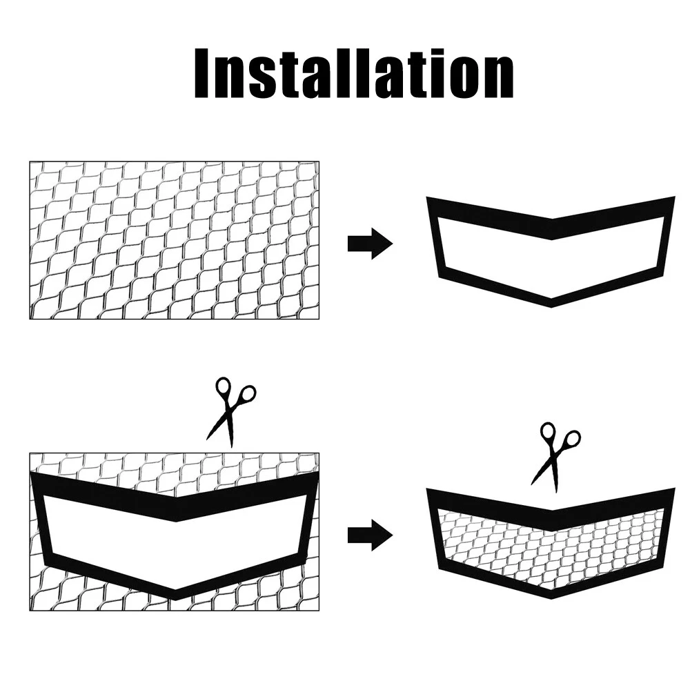 Product Features Made of high quality aluminum alloy material. Mesh Size:Approx. 11 x 25mm. Color:Black. Soft but durable, easy to cut and install. Prevent the destruction of the process of moving foreign objects on the vehicle interior parts. Protect your intercooler, radiator, and engine bay from road rocks, debris, garbage, leaves, etc. Universal fit for any bumper, body kit, fender, hood vent, vehicle opening, etc. Specification Type: Grille Material :Aluminium Mesh Size :Approx. 11 x 25mm Color :Black Size :Approx. 100 x 33cm/ 40" x 13" Feature :Soft but durable, easy to cut and install Style :Hexagonal style Package Includes 1PC Car Grille