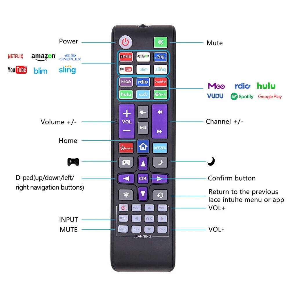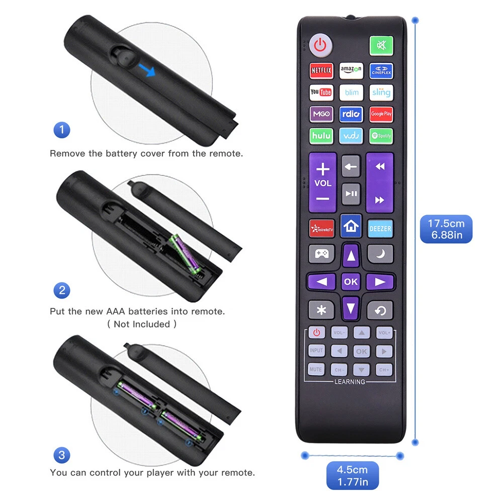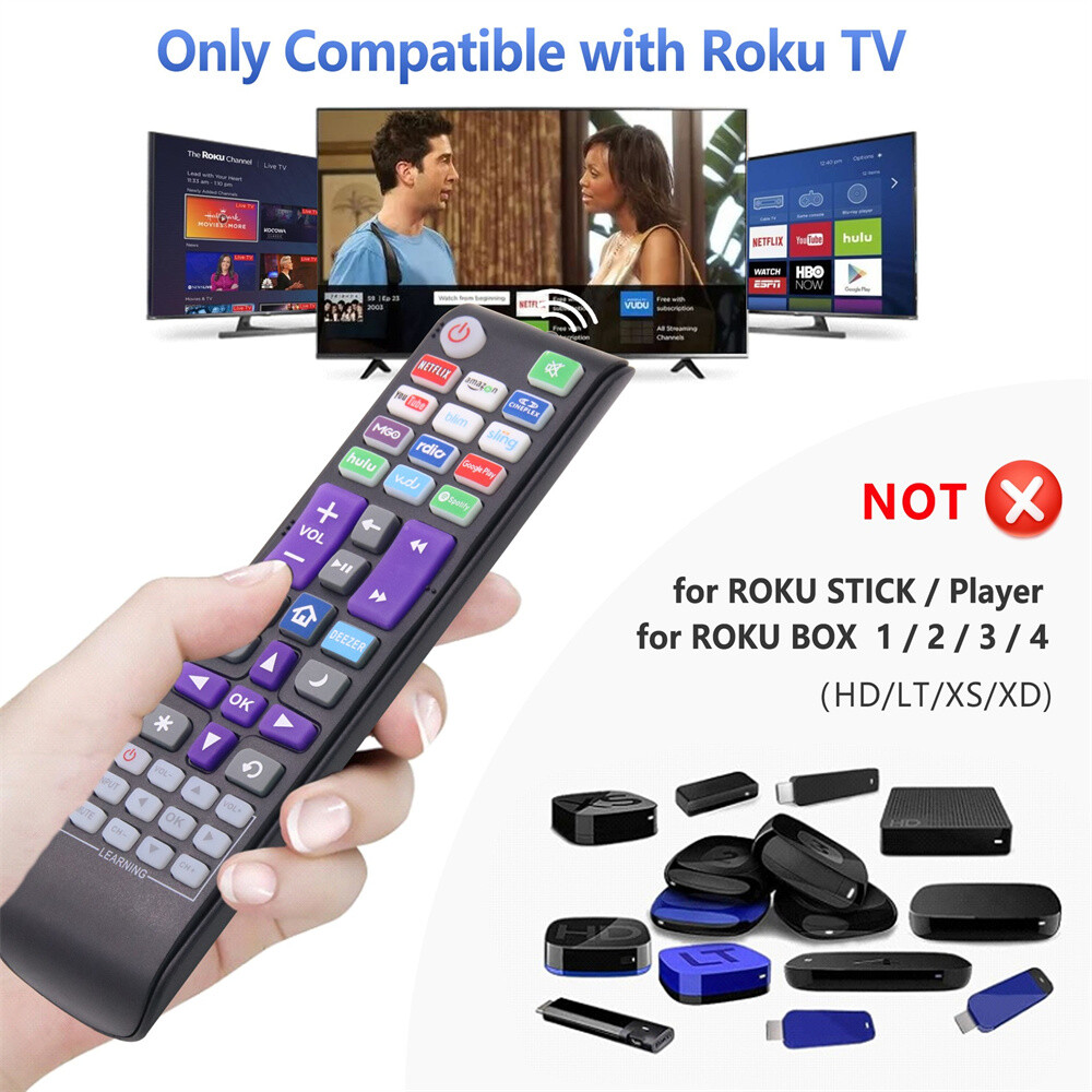Product Description If you have any questions, please contact customer service first, do not open disputes easily, thank you! Specification: Condition: New Material: ABS Material Colour: As Shown Quantity: 1 x remote control (requires 2 x AA batteries,batteries are not included) Remark: A replacement remote control units and will work as well as the originals.. Please NOTE: For ROKU TV is a smart TV for Roku system built-in, NO extra for Roku Player connect with the TV. If your original TV Remote doesn't have for "ROKU TV" on it, DO NOT buy it. No voice search function; No headphone Jack. With TV power button and volume control buttons. Compatible with: For TCL Roku TV For Sanyo Roku TV For LG Roku TV For RCA Roku TV For HITACHI Roku TV For HAIER Roku TV For ONN ROKU TV For INSIGNIA ROKU TV For HISENSE ROKU TV For SHARP ROKU TV For JVC ROKU TV Compatible with: For Roku 1/2/3/4 HD LT XS XD IR ROKU Remote Package Includes: 1* Remote control(batteries are not included) About Us We accept all payments authorized by eBay. powered by