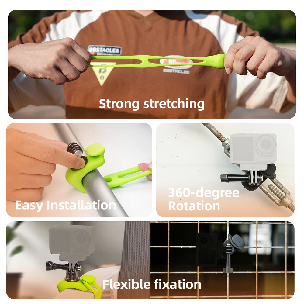SAFE & SECURE SHOPPING 100% SATISFACTION GUARANTEED FAST SHIPPING Store Categories Store Categories You may also like Universal Silicone Flexible Mount For Gopro Hero/Insta360/DJI Osmo Action Camera Product Description Features: 1. 360° rotation, without disassembling the camera, push the base for angle adjustment. 2. Perfect fits for GoPro Hero 12 11 10 9 8 7 6 5 4, for Insta360, for DJI Osmo Action, for SJCAM, for EKEN etc action camera. 3. Multiple scenes application, like climbing, riding, fishing etc. Immersive continuous POV footage, selfies with unique perspectives, etc. 4.Highly elastic silicone and double-hole design help it be installed on surfaces of objects of different sizes to obtain various tricky positions; 5.Double port adjustment, can adapt to tube with an approximate diameter of 22-38mm, mesh distances of 45-60mm. Specifications: Material: Silicone+Plastic Fit For Tube Diameter: 22mm~38mm Fit For Mesh Width: 45-60mm Note: This product is only suitable for light sports and stationary shooting. It is not suitable for severe and extreme sports such as mountain biking and mountain motorcycles. Package includes: 1* Silicone Mount Shipping Returns Contact Us Payment Shipping 1. Items sent from US warehouse. 2.Receiving time = Processing time + Shipping time 3. Processing Time: Around 1-2 business Days 4. Shipping Time: 3-5 business day it may have a little delay during some holiday (such as Christmas),any problem ,please feel free to contact Returns 1. 30 days warranty from the purchased date. Please contact us via email before returning the defective item. 2.Our warranty does not extended to any product that are physically damaged or that are not under normal operating conditions as result of misuse or improper installation on the buyer/user's part. 3.Return items should include the original packaging and all accessories. buyers MUST contact us for the returning address. 4.In all cases, buyers pay shipping fees at their own cost to return products for exchange or refund. We will be responsible for the postage of replacements. Refund will be made upon receipt of the returned item. Contact Us Pls contact us if you have any problems,we will try our best to solve for you Payment We accept all verified payment from eBay. Copyright © 2022 Tongtool