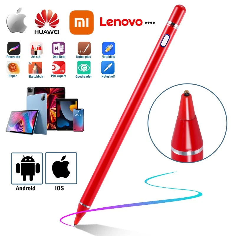 Universal Stylus Pencil For iPad iPhone Android Phone Tablet Capacitive Pen New Feature: 1. Continuous use up to 8-10 hours, 30 minutes without use will automatically power off, three-color LED lights indicate activity, charging or fully charged. 2. Stylish and simple style, aluminum alloy material and painting process, the pen tip is made of special conductive material, precision grinding, which can prevent damage to the screen. 3. The stylus is sensitive to pressure and tilt, so you can easily change line thickness, create subtle shadows, and produce various artistic effects. 4. This stylus adopts the latest technology to ensure that it is widely compatible with all touch screen products, suitable for most mobile phones, tablets, capacitive screens and other electronic devices. Specification: Model: 2262 Colour: Red/White/Black/Silver Material: aluminum alloy Process: painting, electroplating Input: 5V-0.2A Applicable models: universal Battery: 100mAh Charging time: 50 minutes Working time: 8-10 hours Charging time: 50 minutes Working time: 8-10 hours Charging interface: Micro charging interface Product size: 175 (length)*8.9 (diameter) mm/6.9*0.35inch Color box size: 21*6.1*2.1cm/8.3*2.4*0.83inch Package includes: 1x Stylus 1x Manual 1x Micro Charging Cable 1x Pen Cap 1x Packing Box Payment Delivery details Terms of sales About us Contact us Payment Payments: Paypal, Google Pay, Visa, Master Card, Amerian Express, Discover. Delivery details All items are shipped from US warehouse. 😉😉 😉 We have 2 wharehouse in US, one is in NJ and the other is in CA. 😉😉 😉 We will ship from the warehouse closest to the buyer's delivery address. Don't hesitate make orders ! We ship to your eBay or Paypal address. Please make sure your eBay or Paypal address is correct before you pay. Terms of sales Free return About us Pls contact our customer service firstly if have any problems , we will help to solve the issue, and could offer free return service for full refund or free replacement after confirming. You can buy from us with confidence Contact us If have any problems, please feel free to contact us.